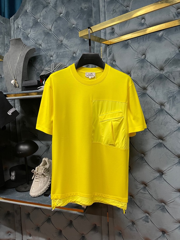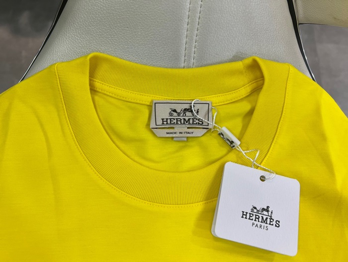エルメスメンズイエロークルーネック半袖Tシャツe222