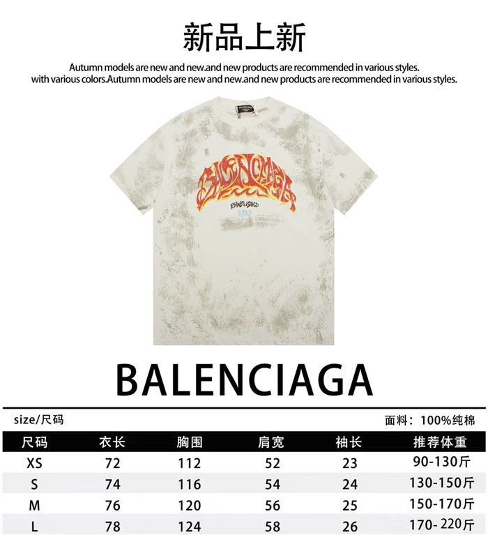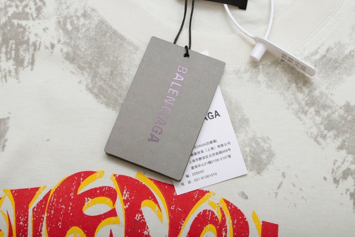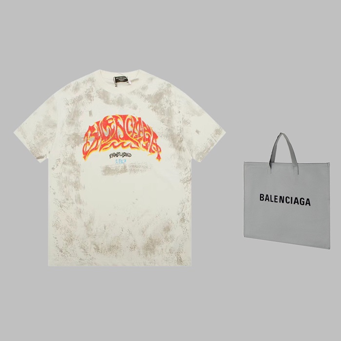 バレンシアガメンズアイボリークルーネック半袖Tシャツa492