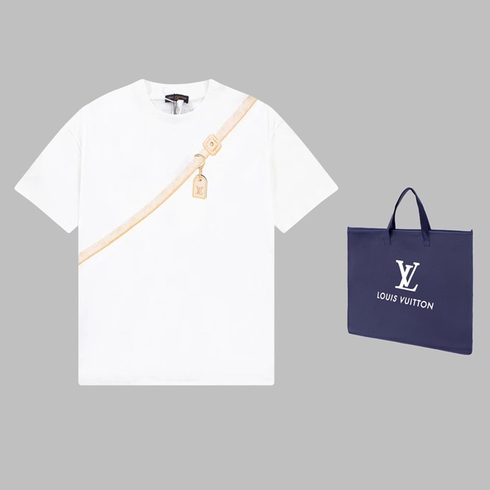 ルイヴィトンメンズホワイトクルーネック半袖Tシャツv1429