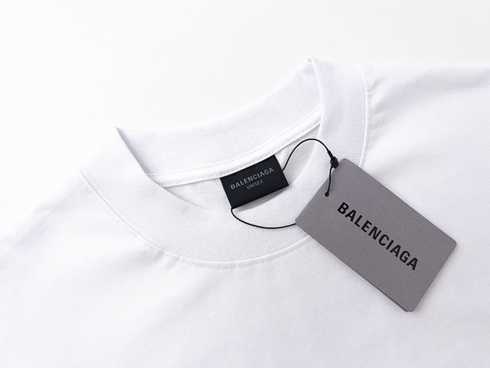バレンシアガメンズホワイトクルーネック半袖Tシャツa498