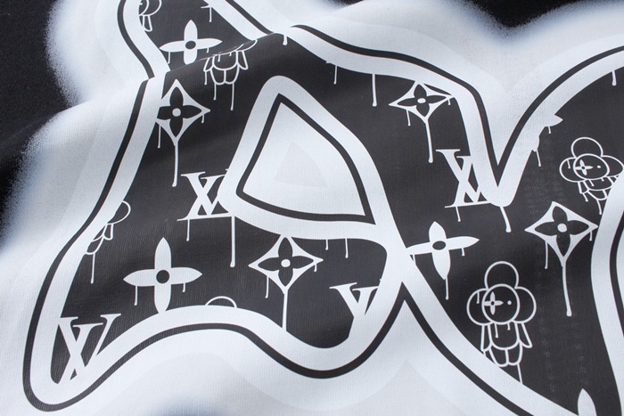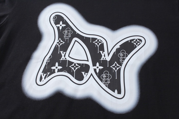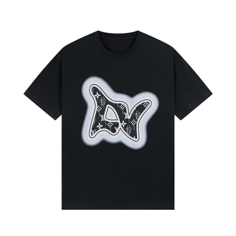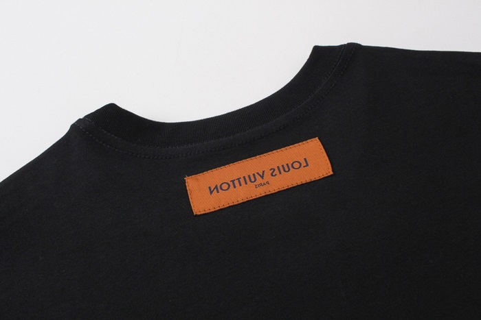 ルイヴィトンメンズブラッククルーネック半袖Tシャツv1432