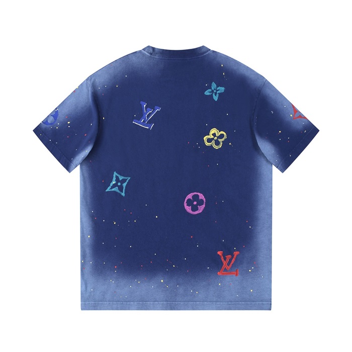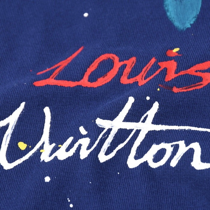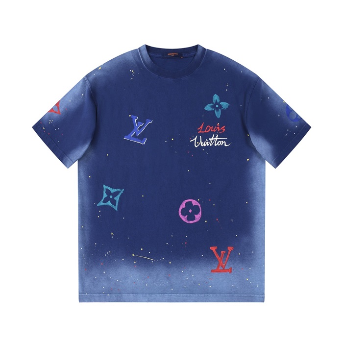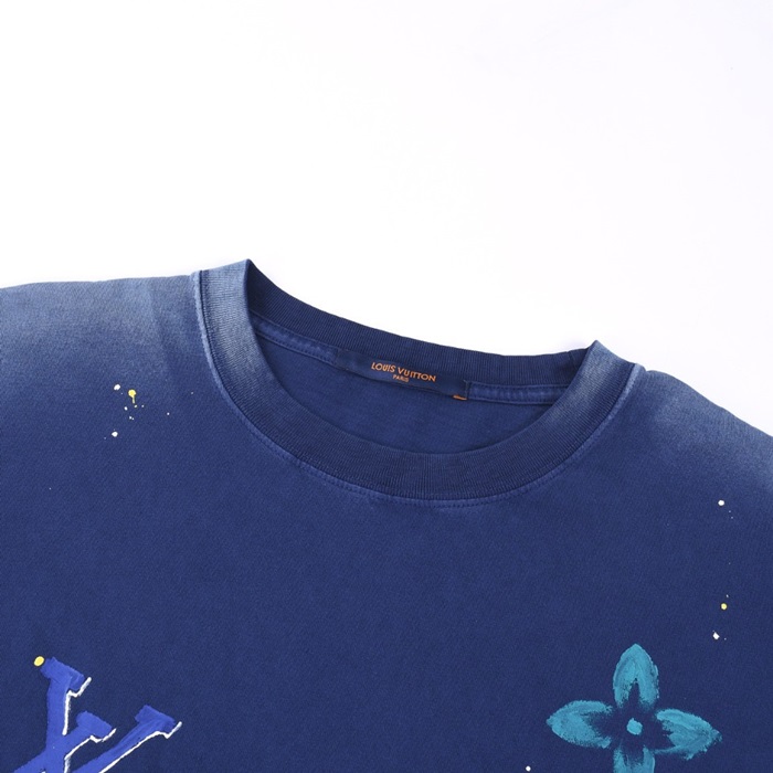 ルイヴィトンメンズクルーネックブルー半袖Tシャツv1434