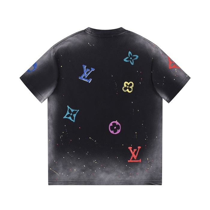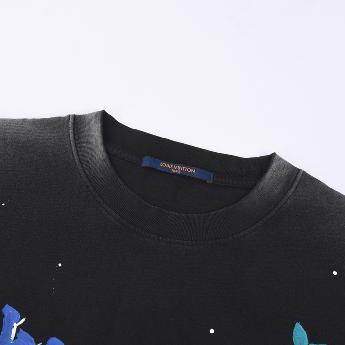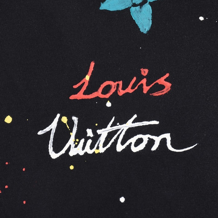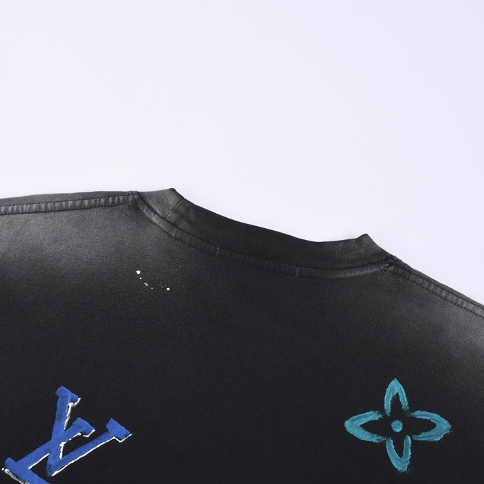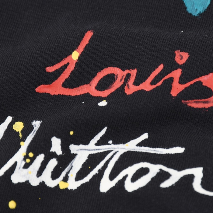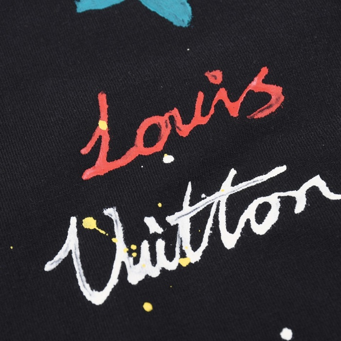 ルイヴィトンメンズクルーネックブラック半袖Tシャツv1435