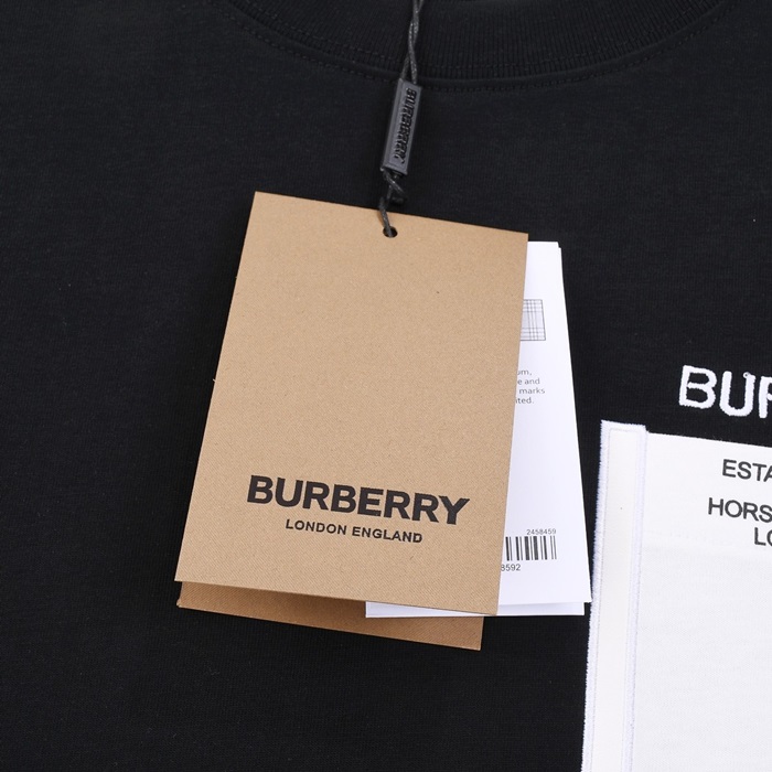 バーバリーメンズブラッククルーネック半袖Tシャツu200