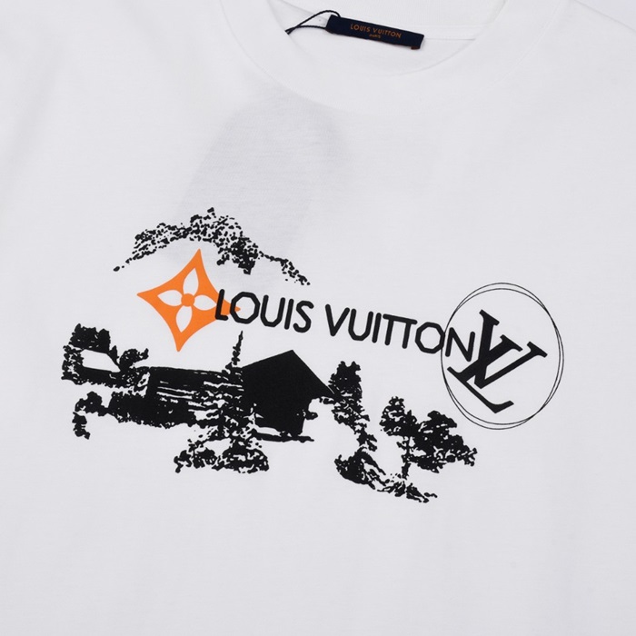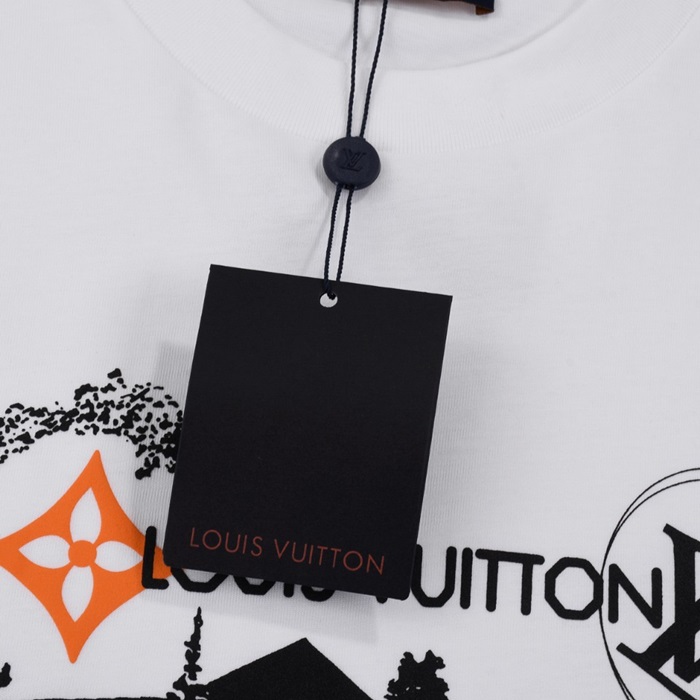 ルイヴィトンメンズクルーネックホワイト半袖Tシャツv1451