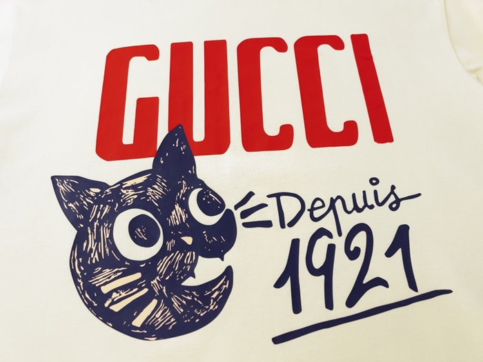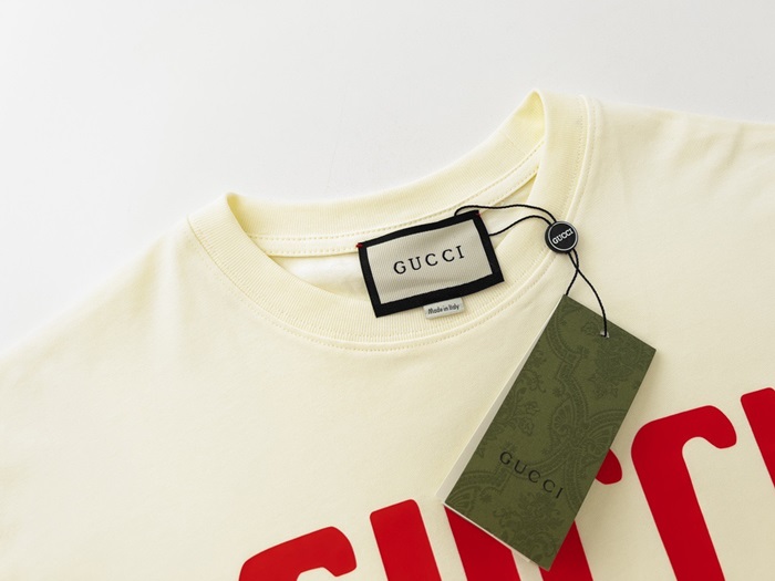 グッチユニセックスアイボリークルーネック半袖Tシャツu788