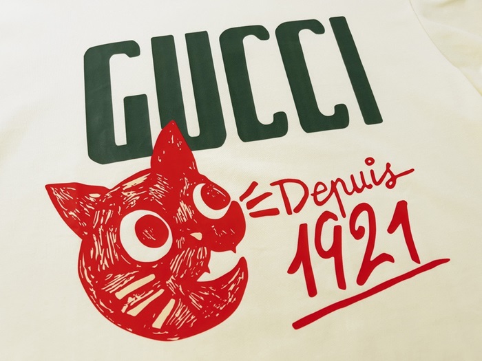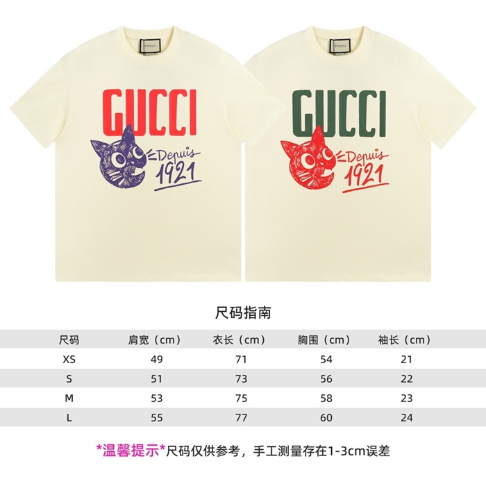 グッチユニセックスアイボリークルーネック半袖Tシャツu789