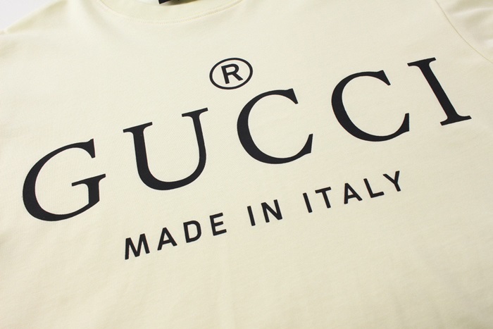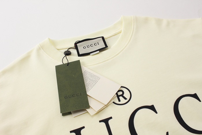 グッチユニセックスアイボリークルーネック半袖Tシャツu795