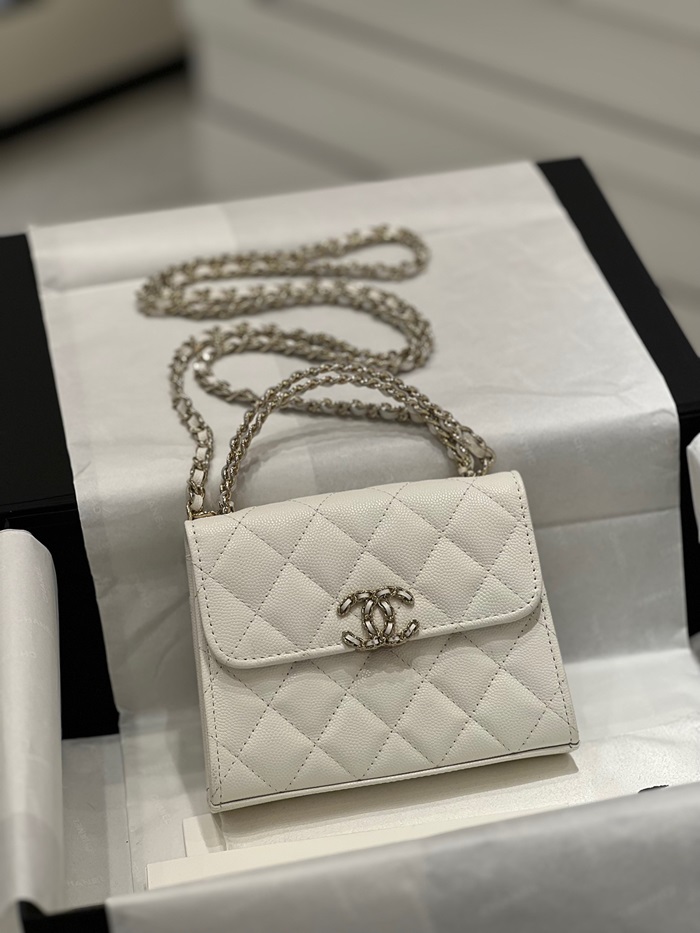 シャネルレディースホワイトミニショルダーバッグh437