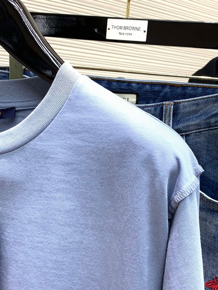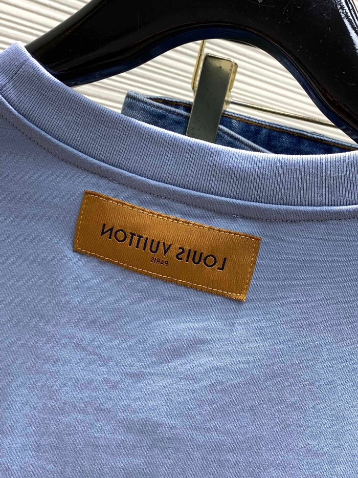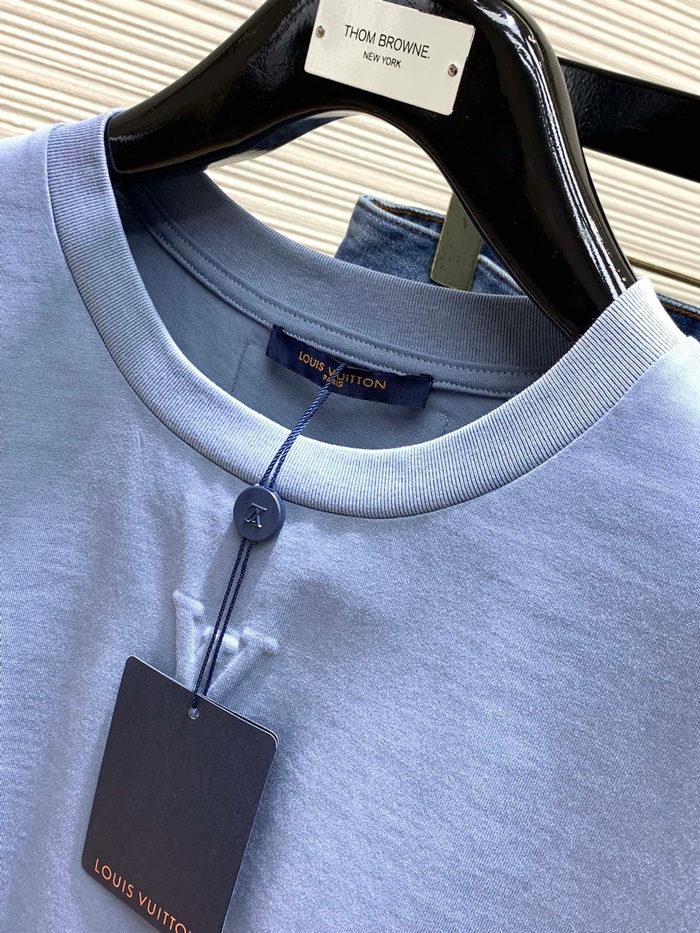 ルイヴィトンメンズクルーネックブルー半袖Tシャツv1473