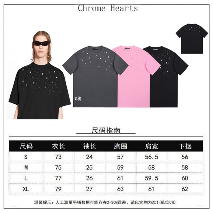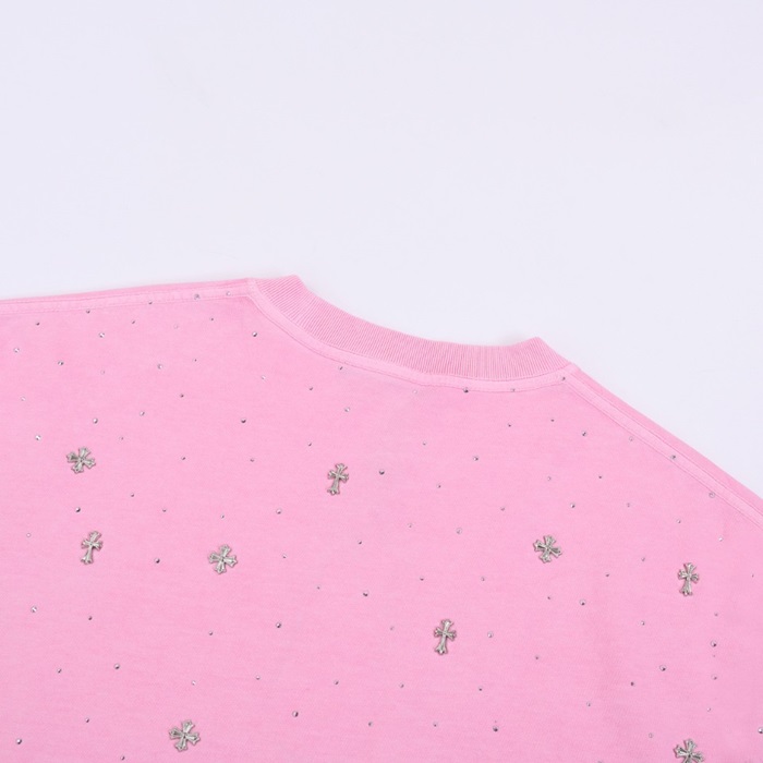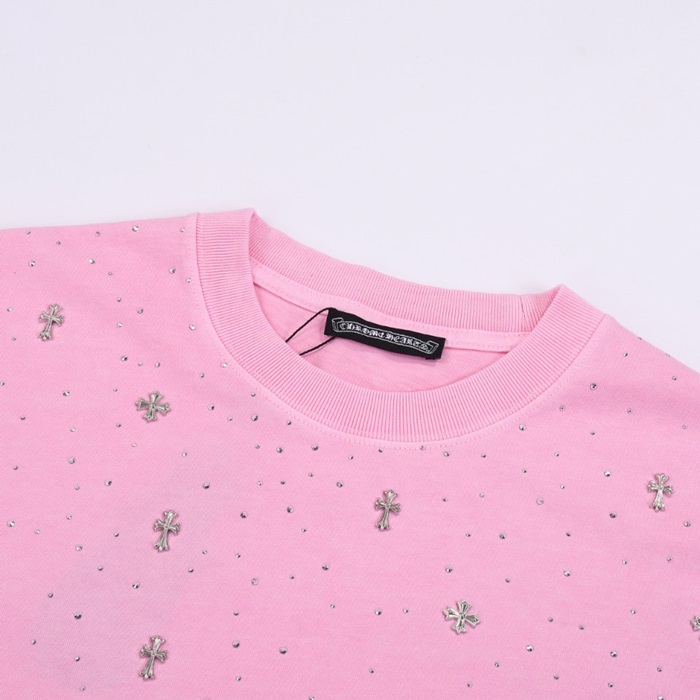 クロムハーツメンズピンククルーネック半袖Tシャツh174