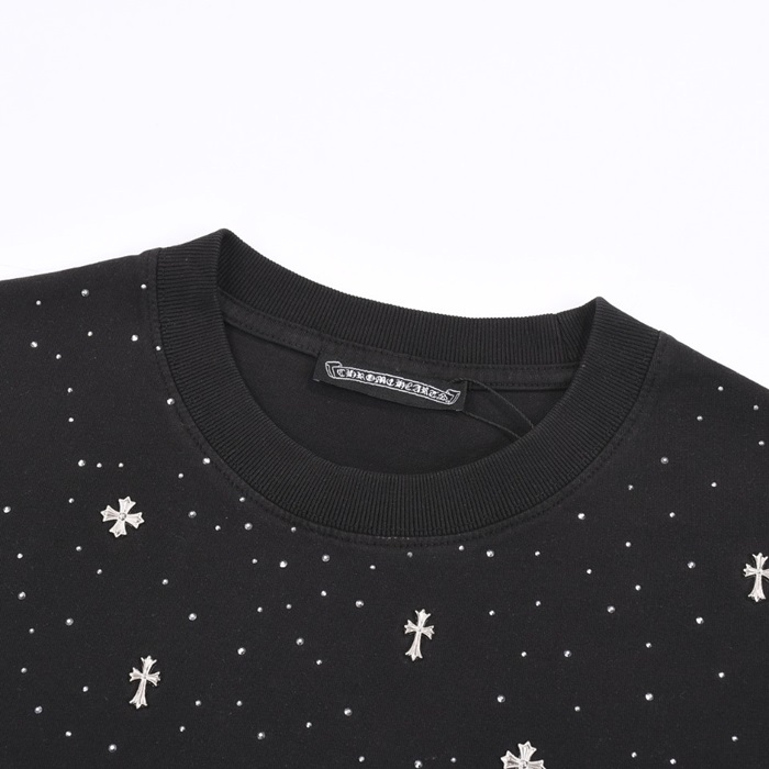 クロムハーツメンズブラッククルーネック半袖Tシャツh175