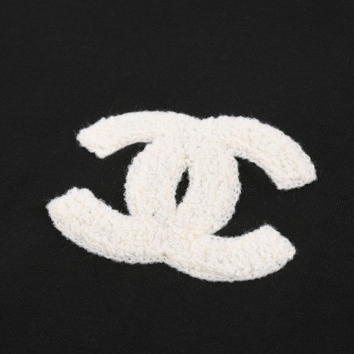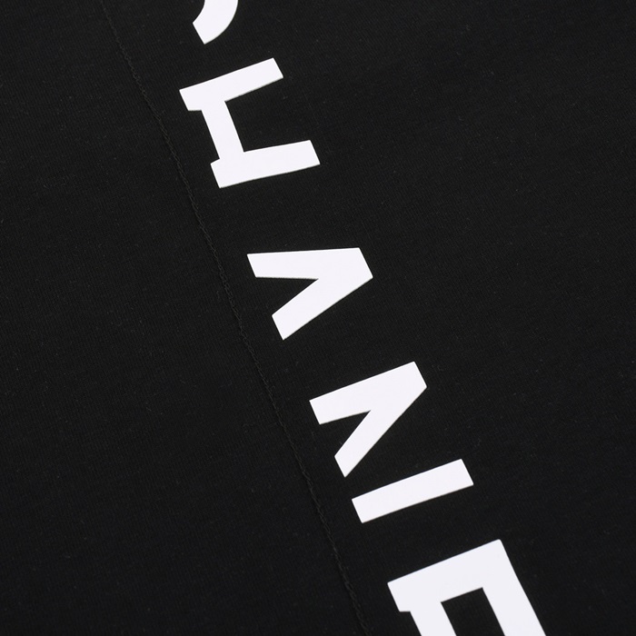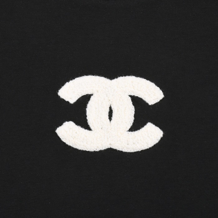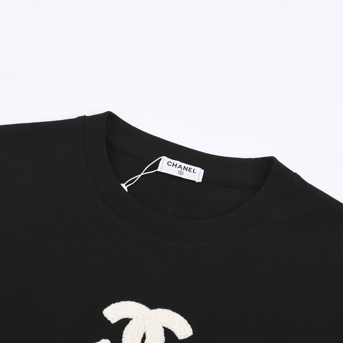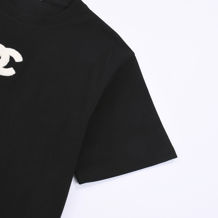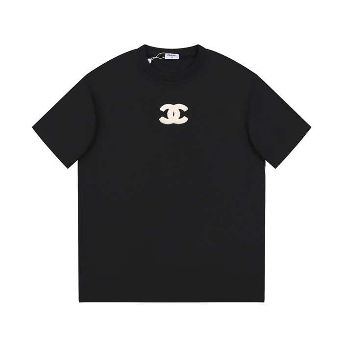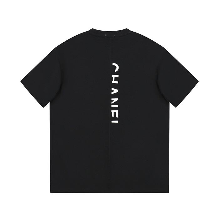シャネルユニセックスクルーネックブラック半袖Tシャツh469
