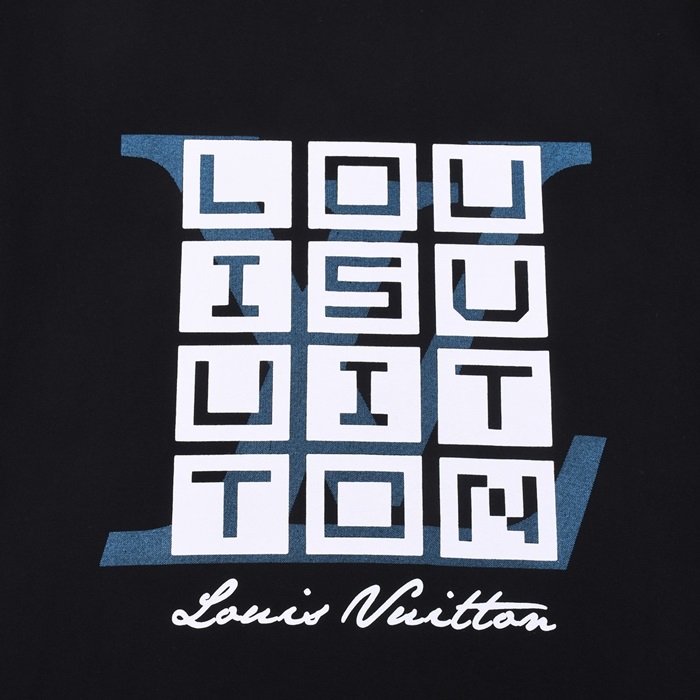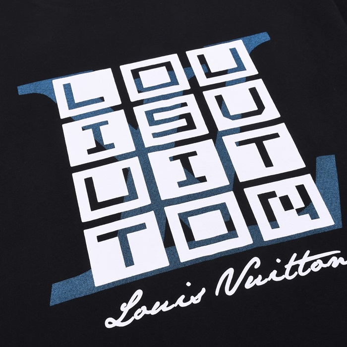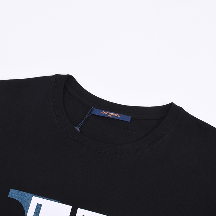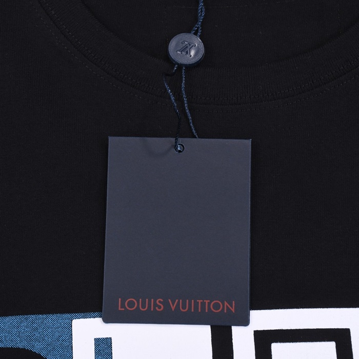 ルイヴィトンメンズクルーネックブラック半袖Tシャツv1474