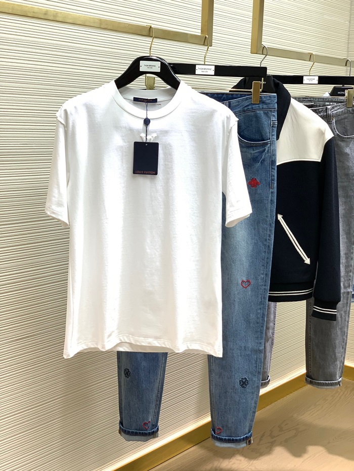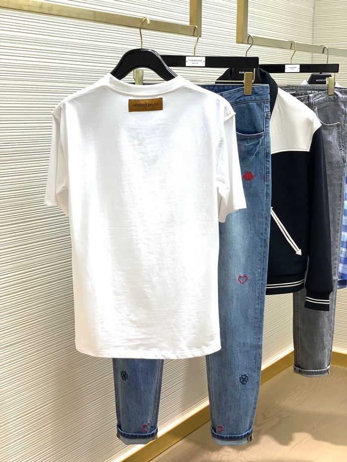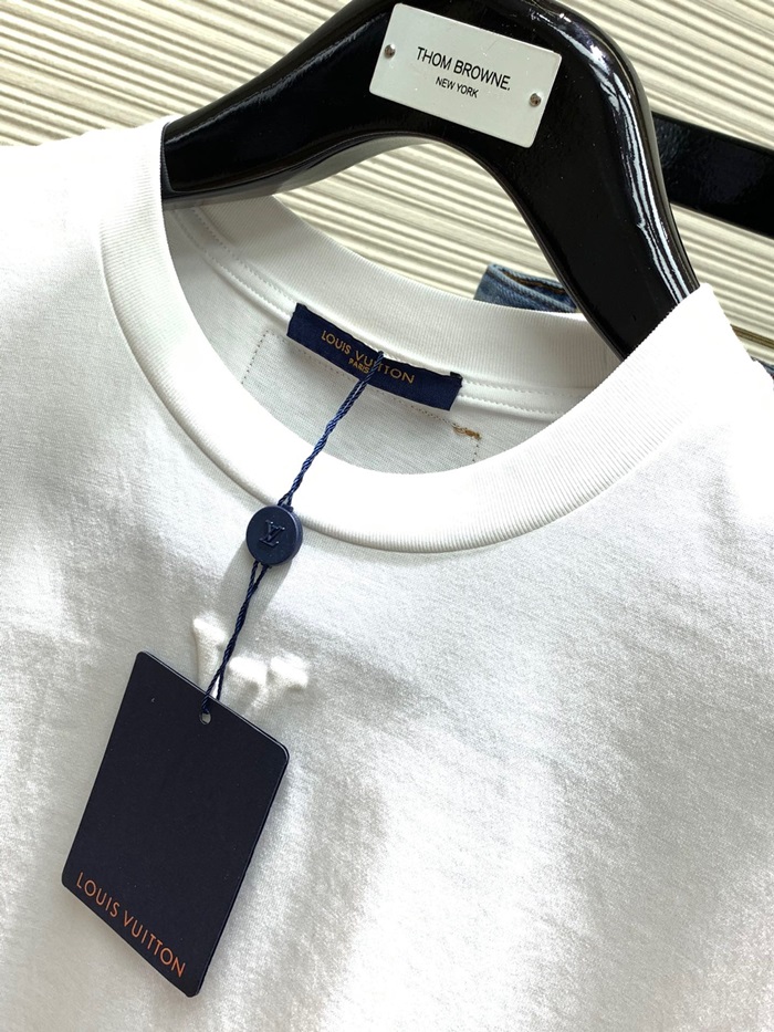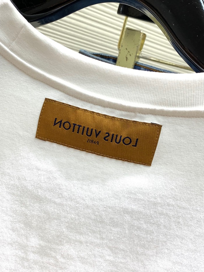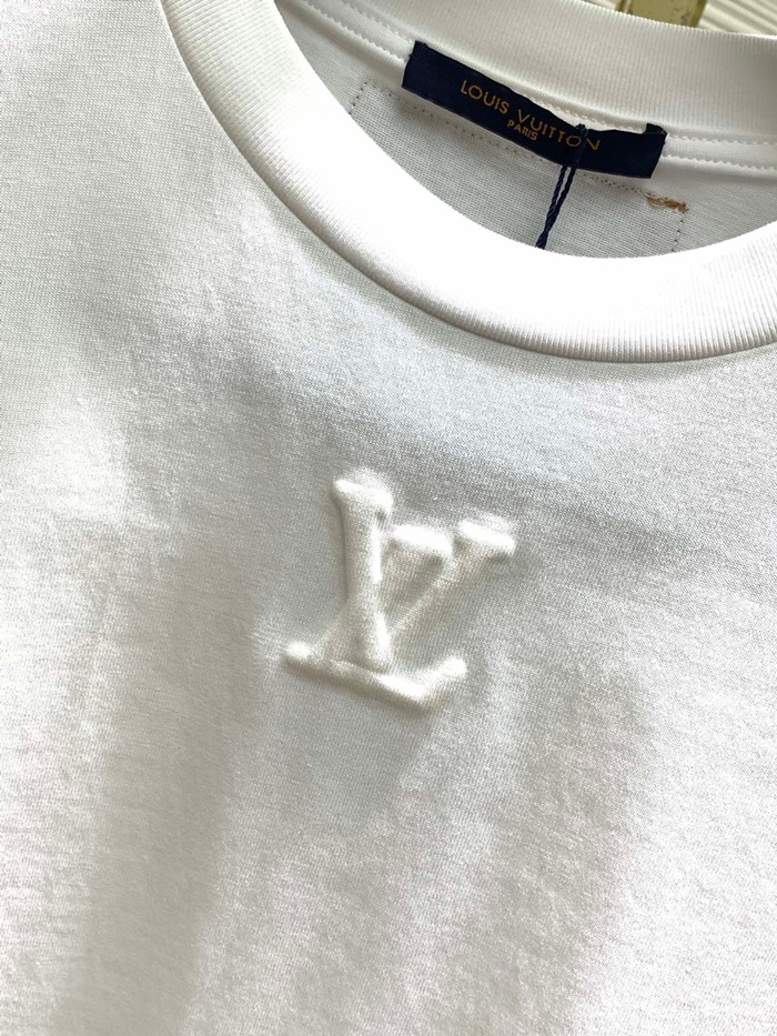 ルイヴィトンメンズクルーネックホワイト半袖Tシャツv1477
