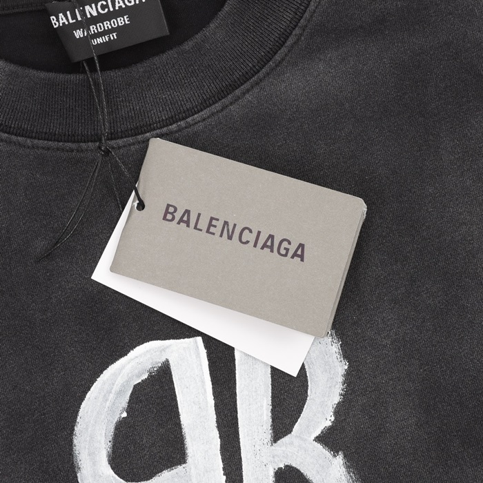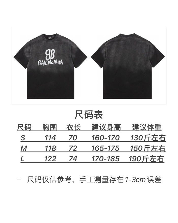 バレンシアガメンズブラッククルーネック半袖Tシャツa508