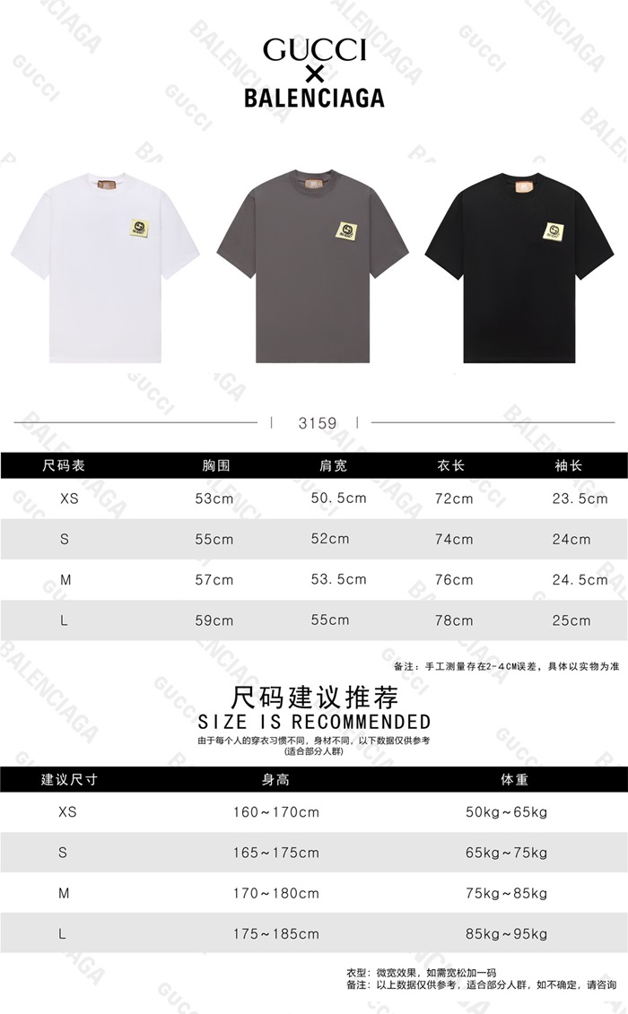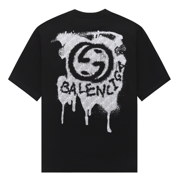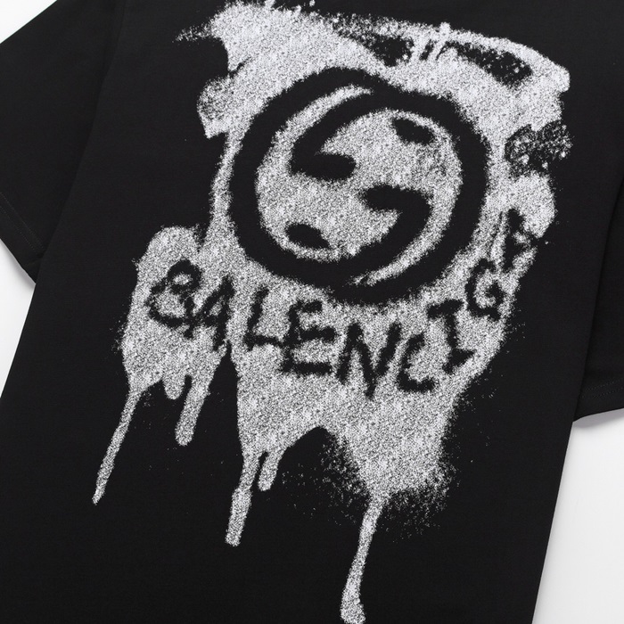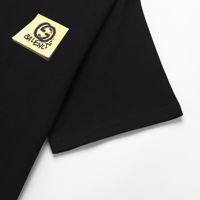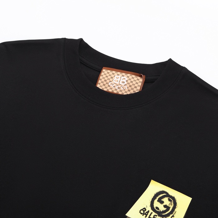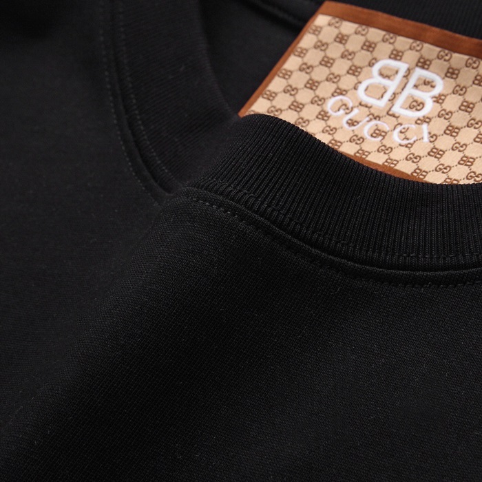 グッチユニセックスブラッククルーネック半袖Tシャツu805