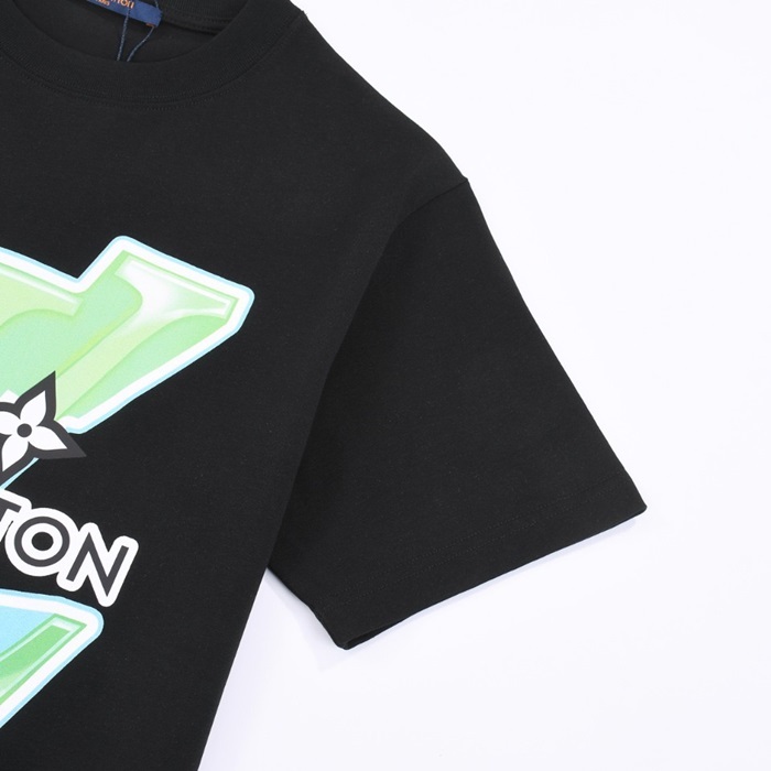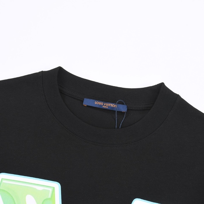 ルイヴィトンメンズクルーネックブラック半袖Tシャツv1500
