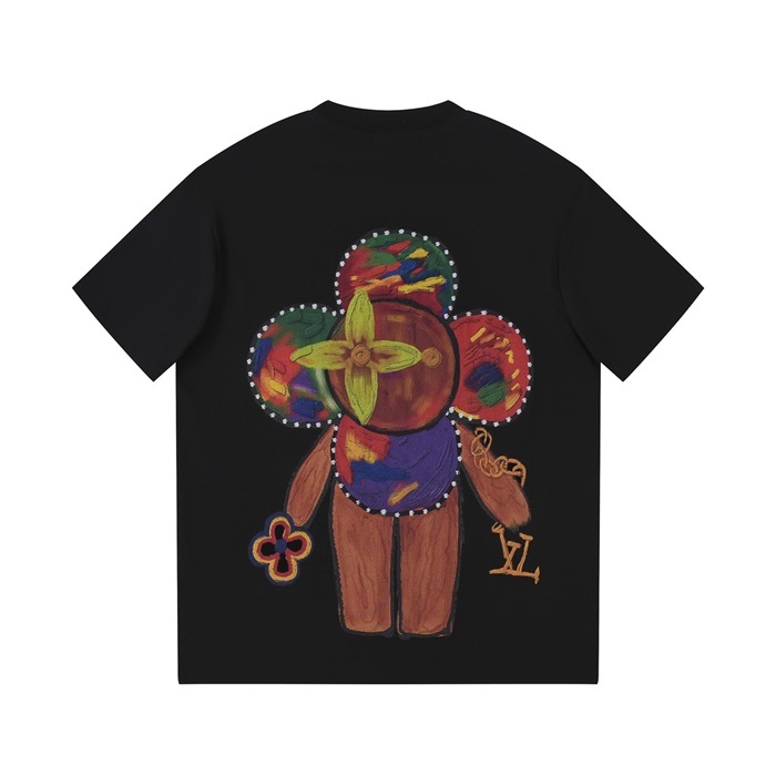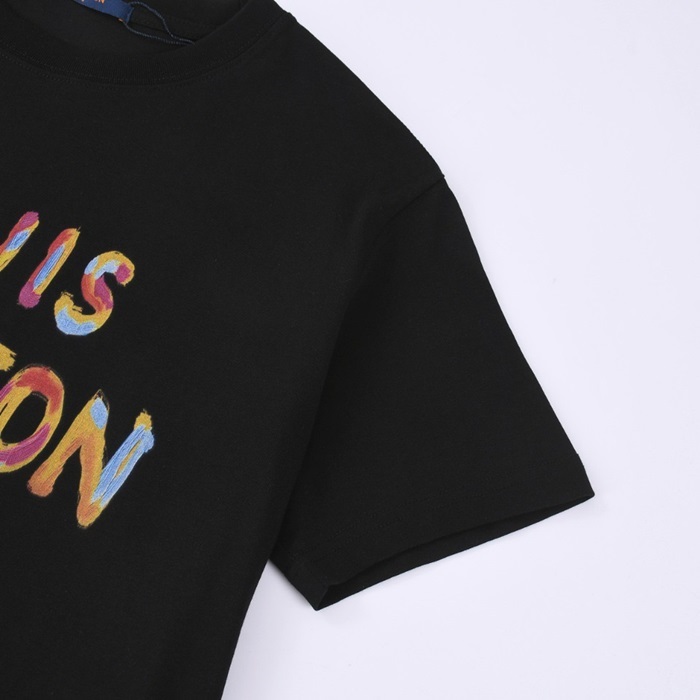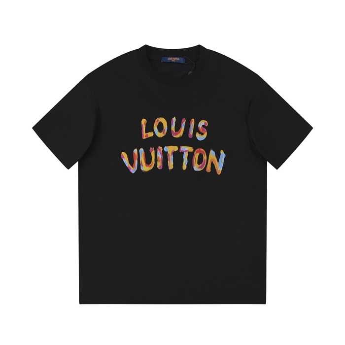 ルイヴィトンメンズクルーネックブラック半袖Tシャツv1505