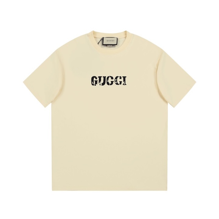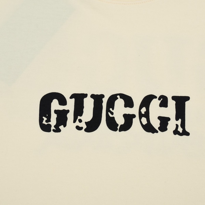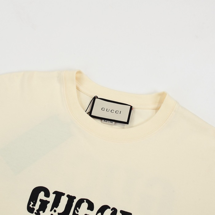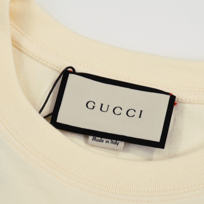 グッチユニセックスアイボリークルーネック半袖Tシャツu818