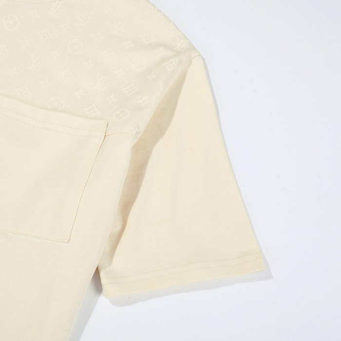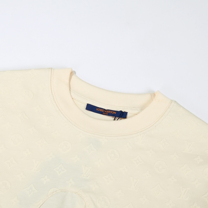 ルイヴィトンメンズクルーネックアイボリー半袖Tシャツv1518