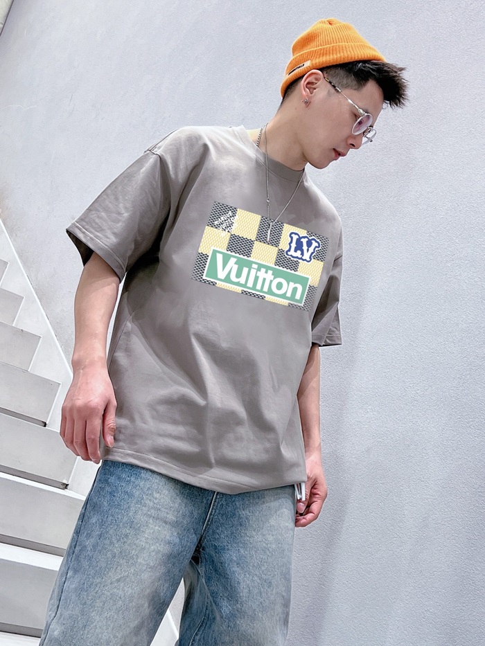 ルイヴィトンメンズクルーネックグレー半袖Tシャツv1528