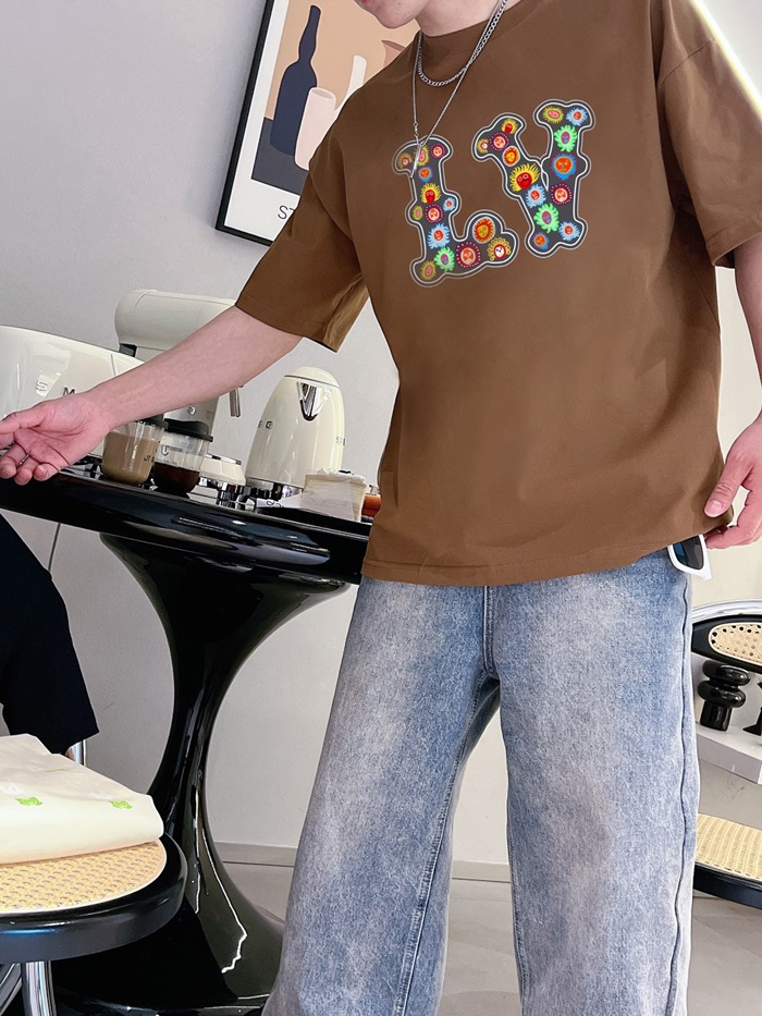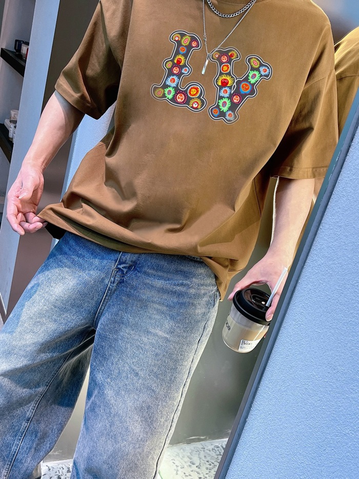 ルイヴィトンメンズクルーネックキャメル半袖Tシャツv1532