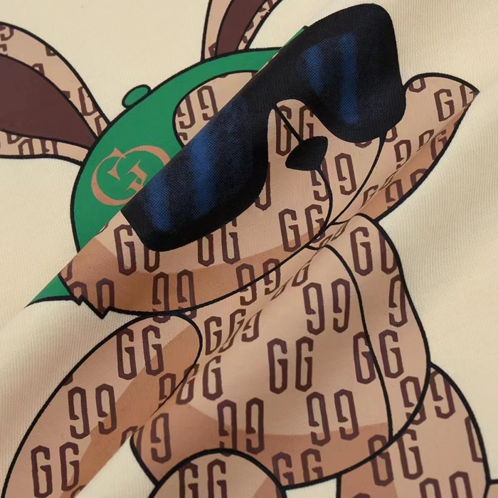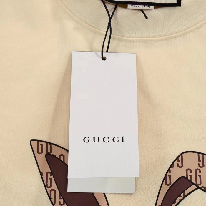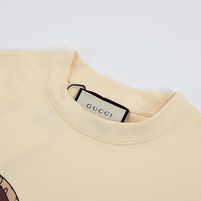 グッチユニセックスアイボリークルーネック半袖Tシャツu828