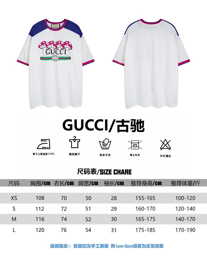 グッチユニセックスホワイトクルーネック半袖Tシャツu835