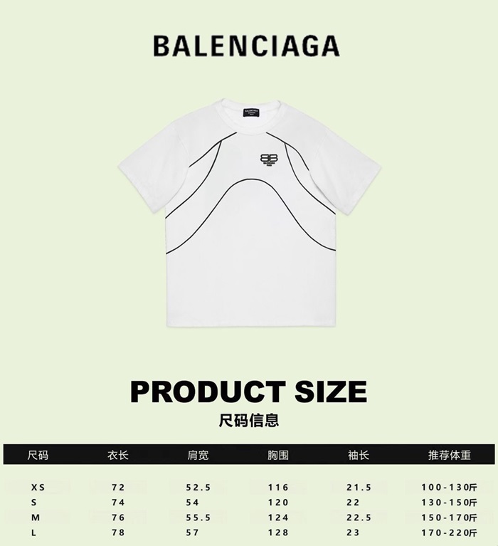 バレンシアガメンズホワイトクルーネック半袖Tシャツa517