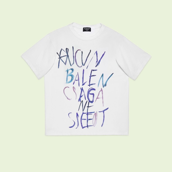 バレンシアガメンズホワイトクルーネック半袖Tシャツa519