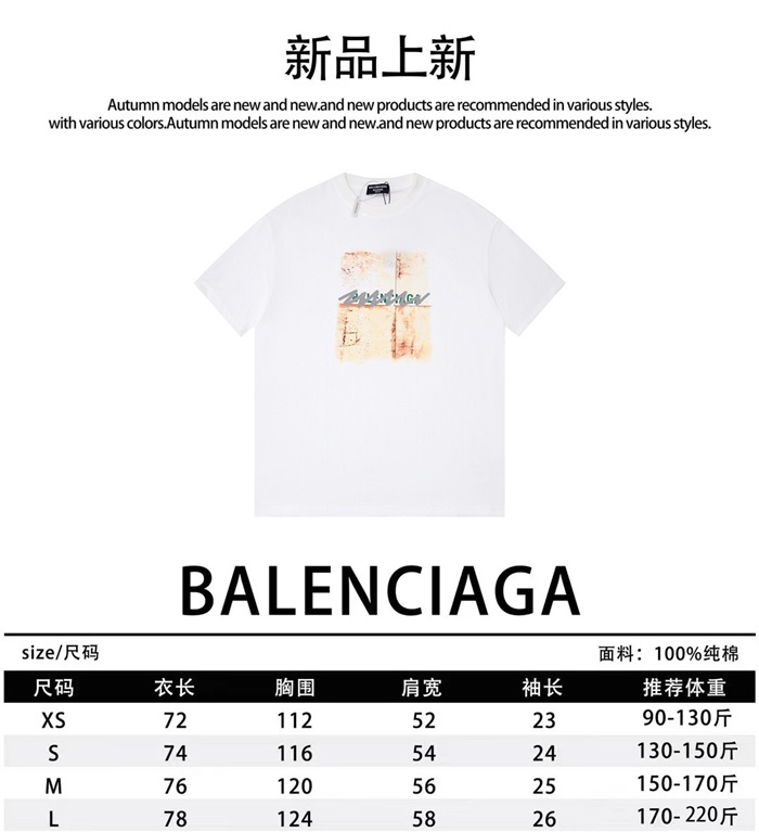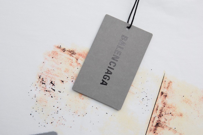 バレンシアガメンズホワイトクルーネック半袖Tシャツa521