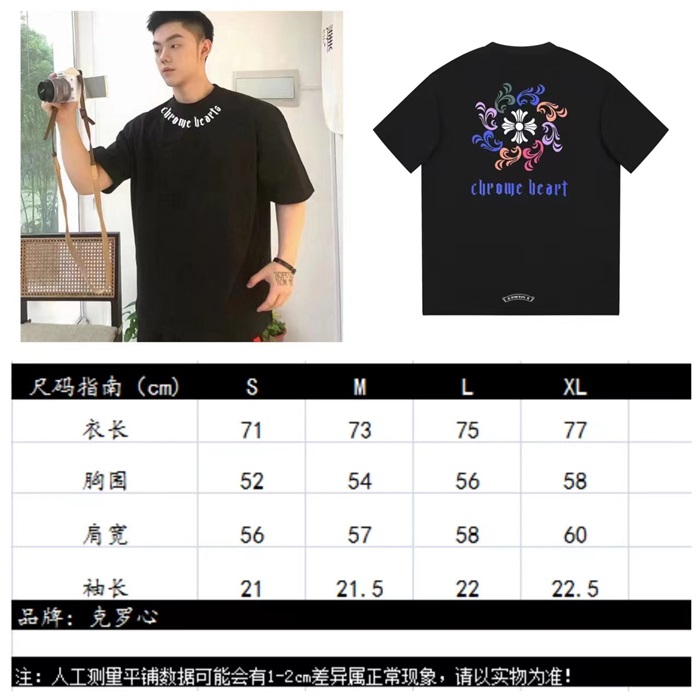 クロムハーツメンズブラッククルーネック半袖Tシャツh184
