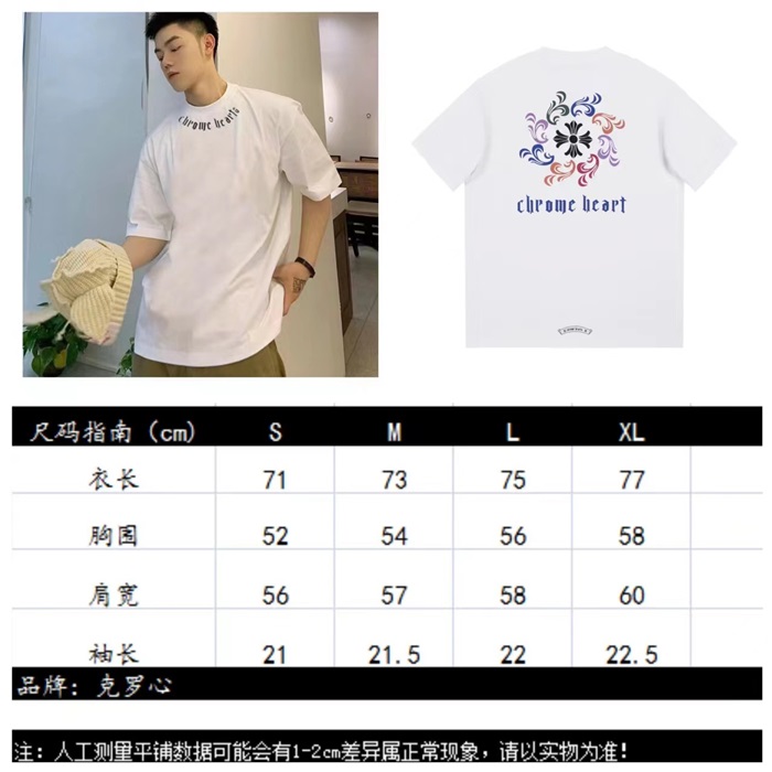 クロムハーツメンズホワイトクルーネック半袖Tシャツh185