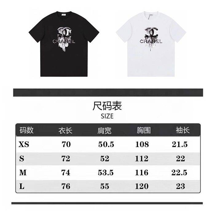 シャネルユニセックスクルーネックブラック半袖Tシャツh486