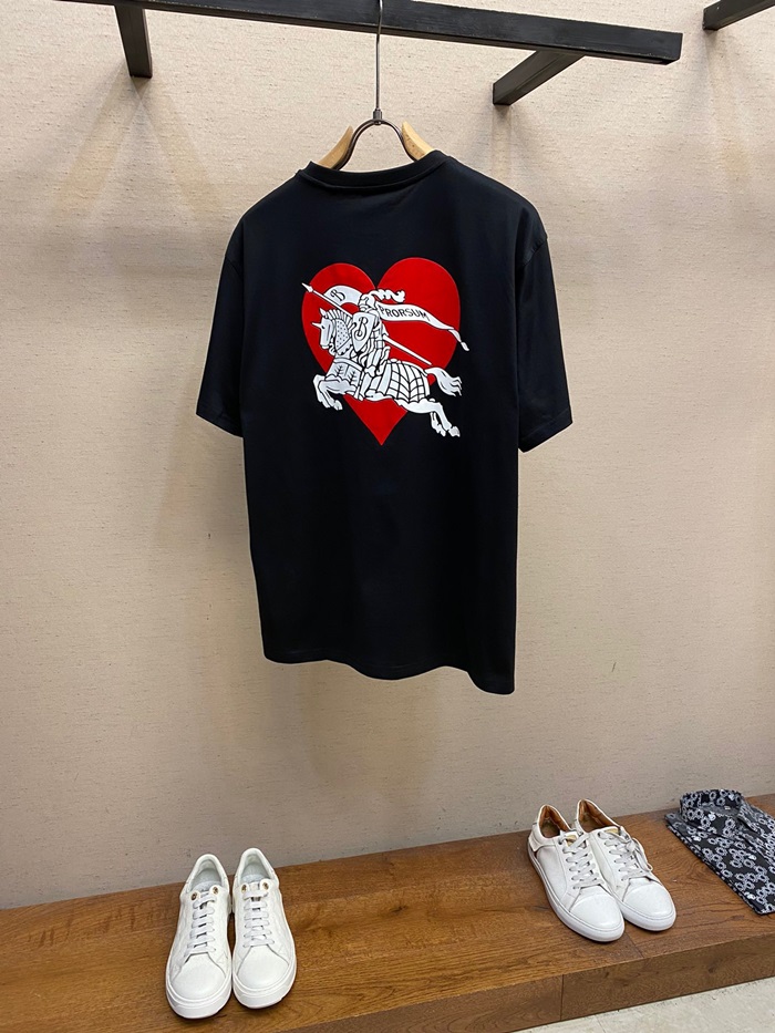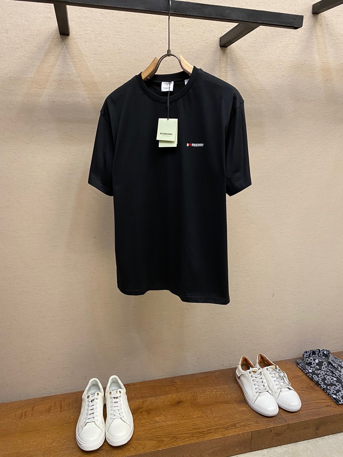 バーバリーメンズブラッククルーネック半袖Tシャツu225