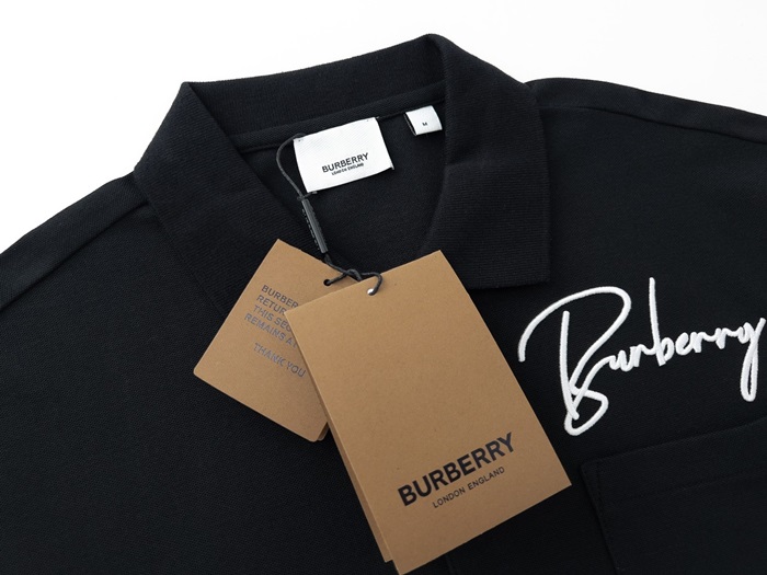 バーバリーメンズブラックポロ半袖Tシャツu230