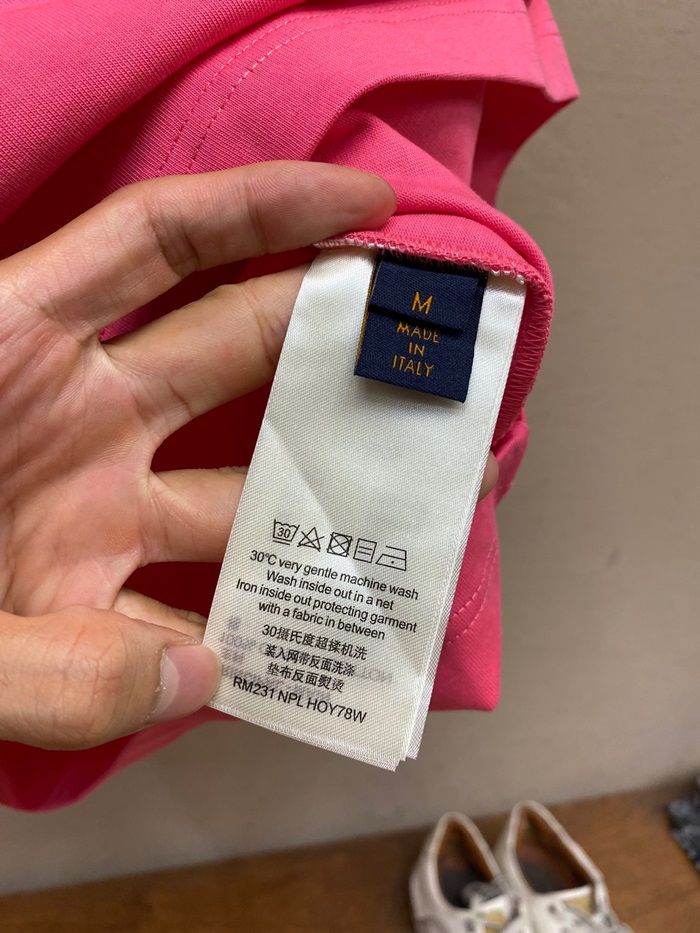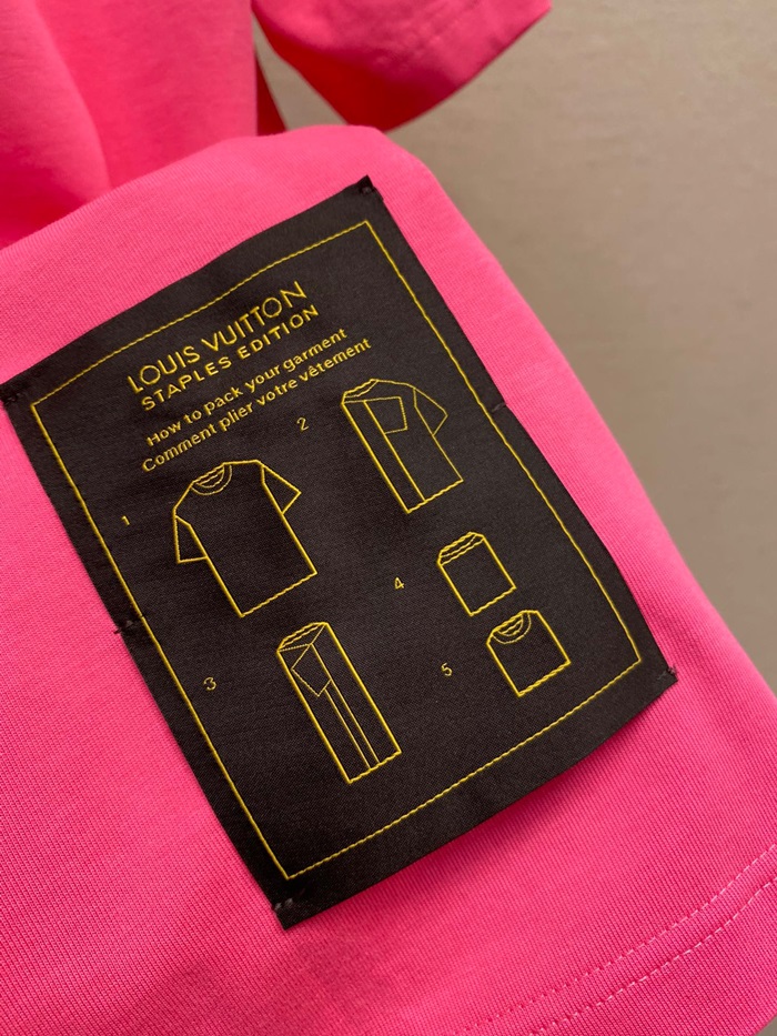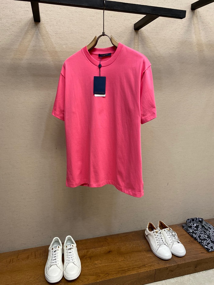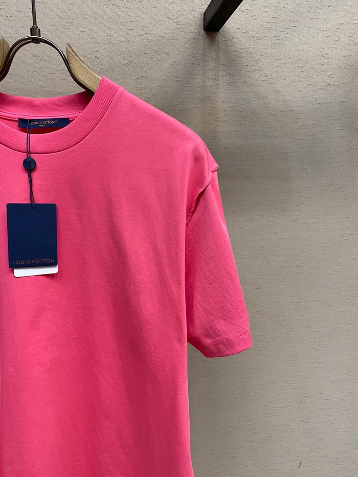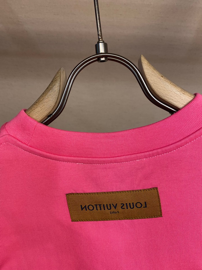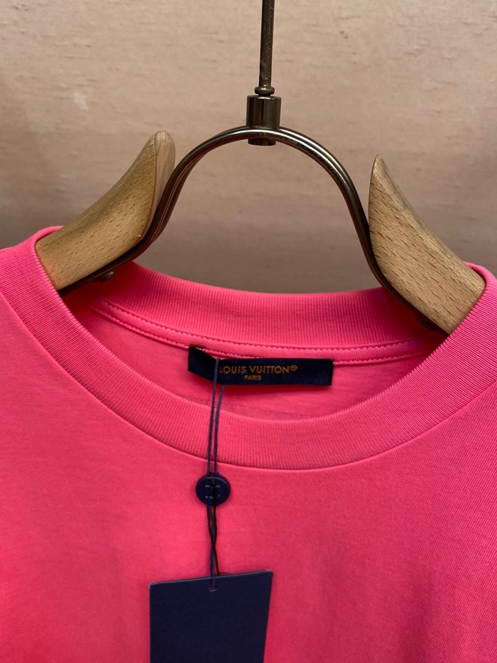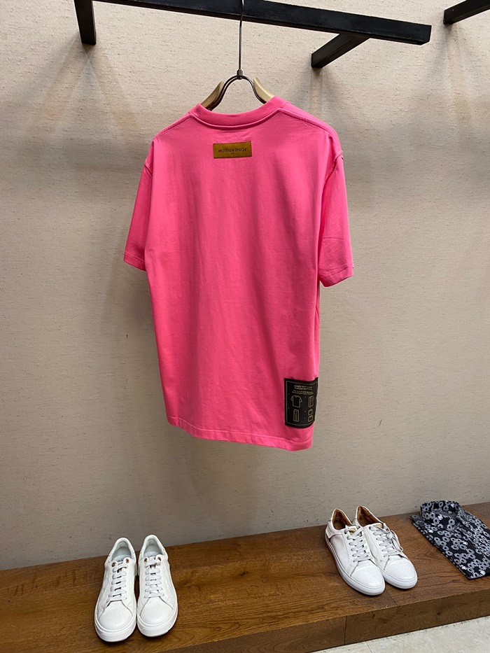ルイヴィトンメンズクルーネックピンク半袖Tシャツv1617