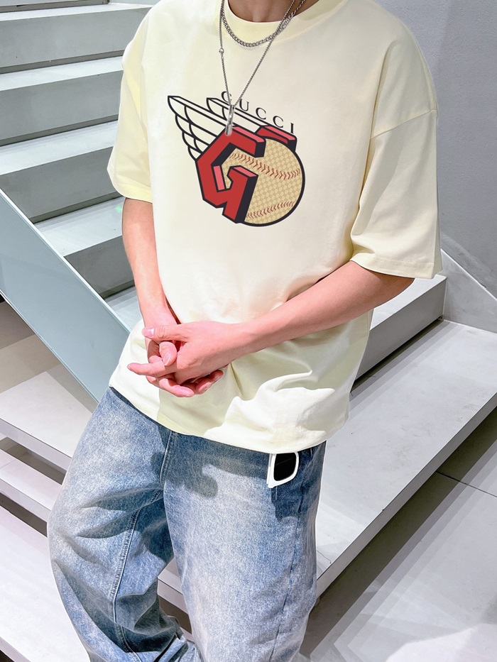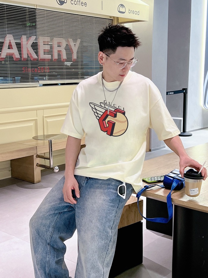 グッチユニセックスアイボリークルーネック半袖Tシャツu882