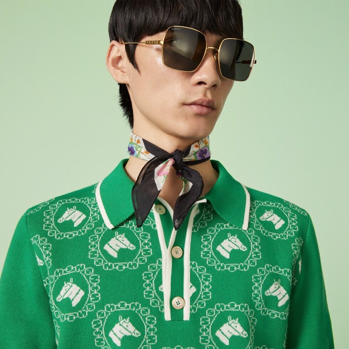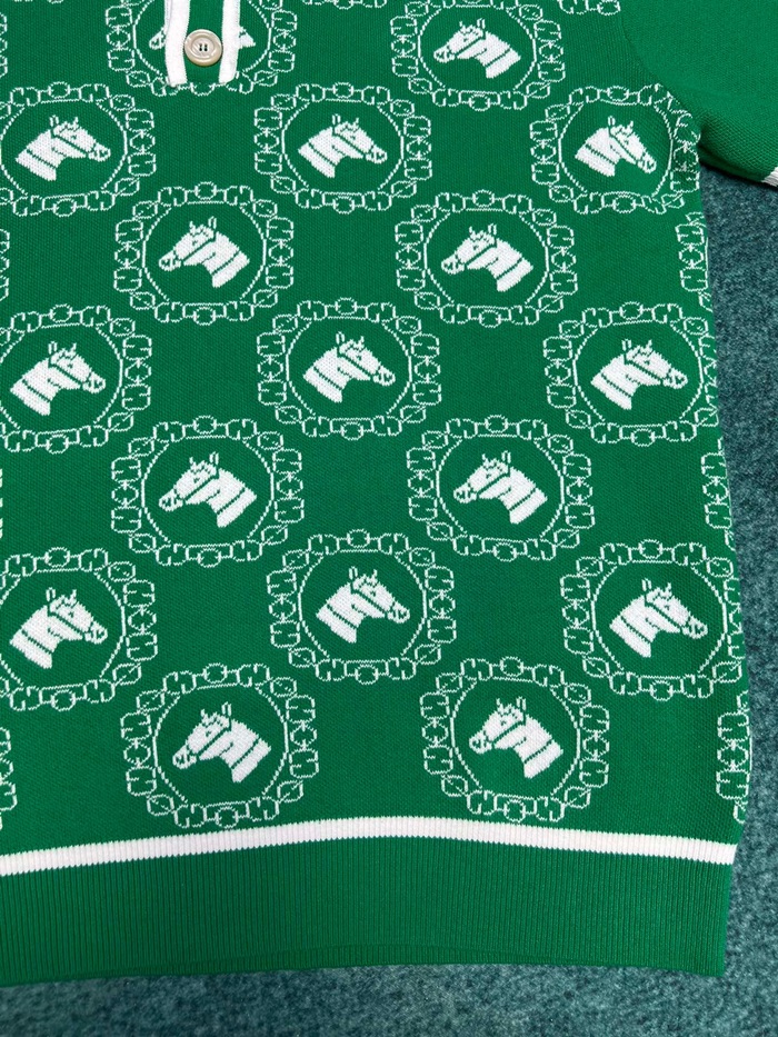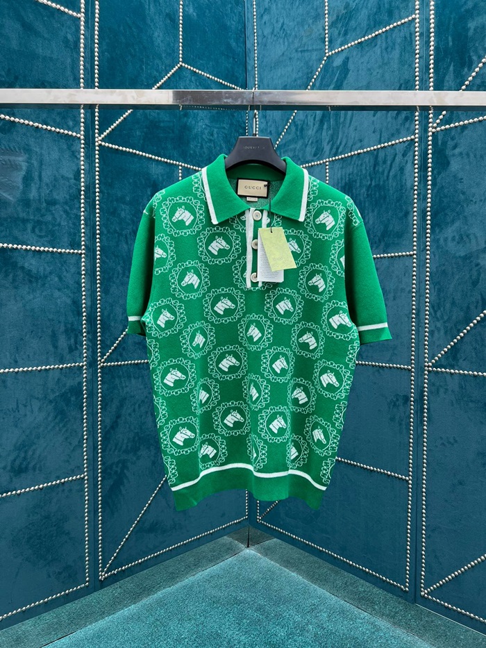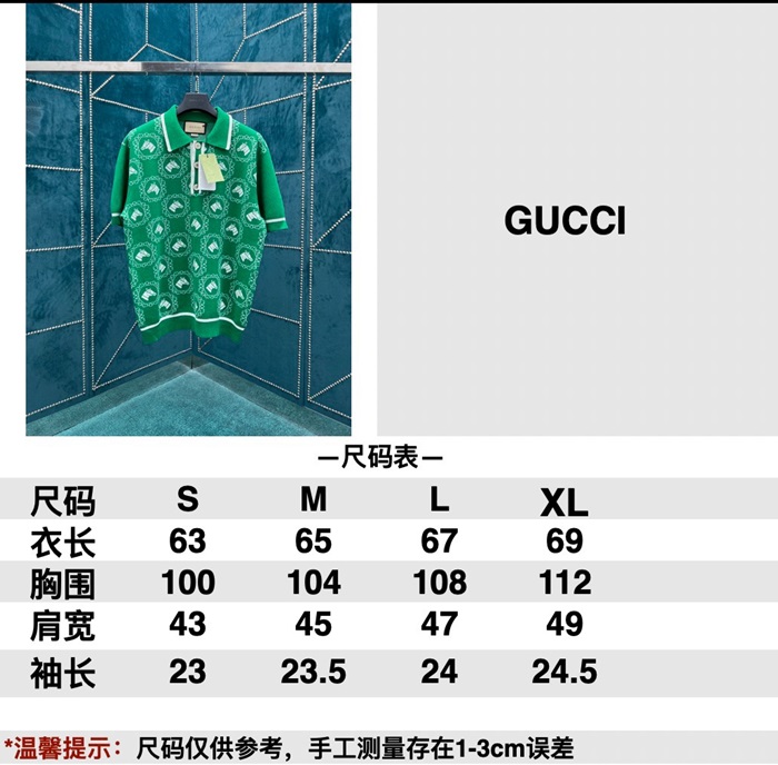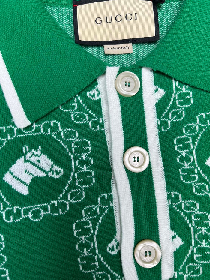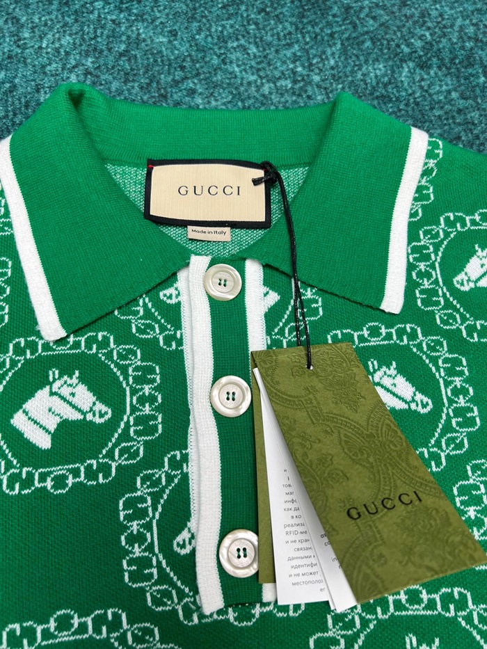 グッチユニセックスグリーンポロ半袖Tシャツu885