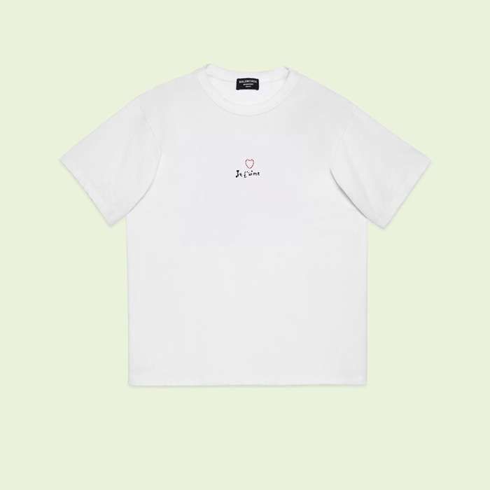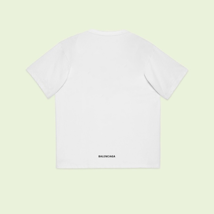 バレンシアガメンズホワイトクルーネック半袖Tシャツa535