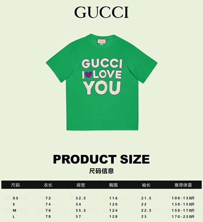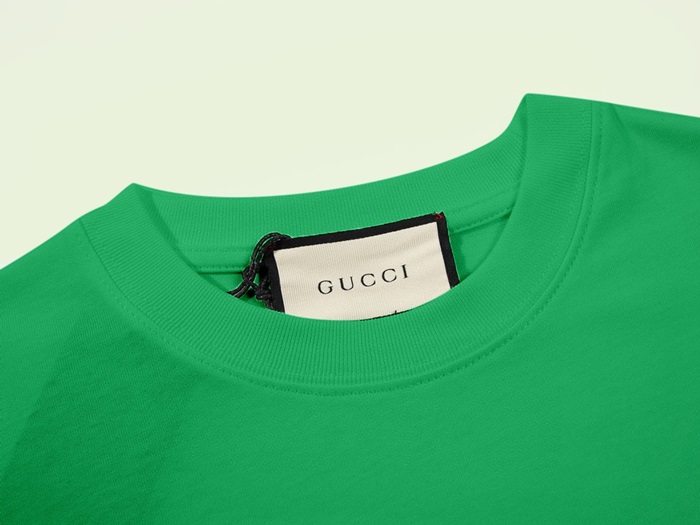 グッチユニセックスグリーンクルーネック半袖Tシャツu889