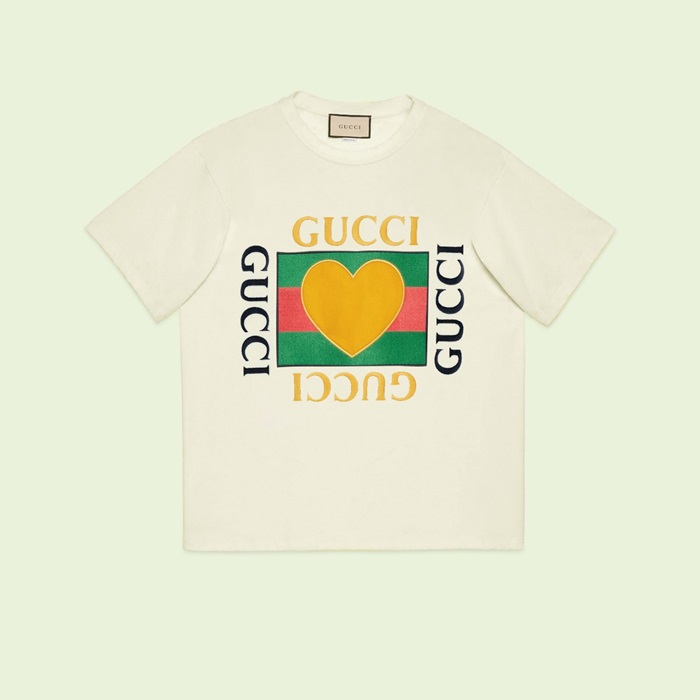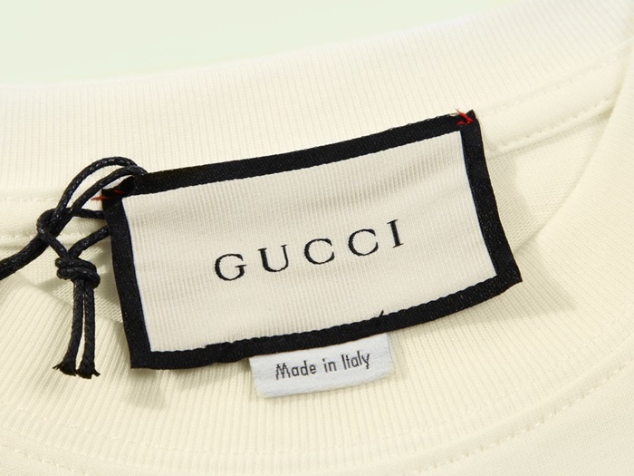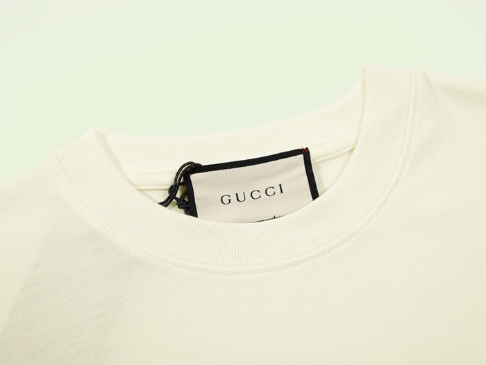 グッチユニセックスアイボリークルーネック半袖Tシャツu891