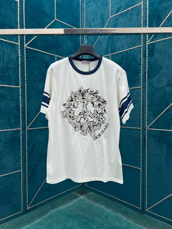 ディオールメンズホワイトクルーネック半袖Tシャツi593