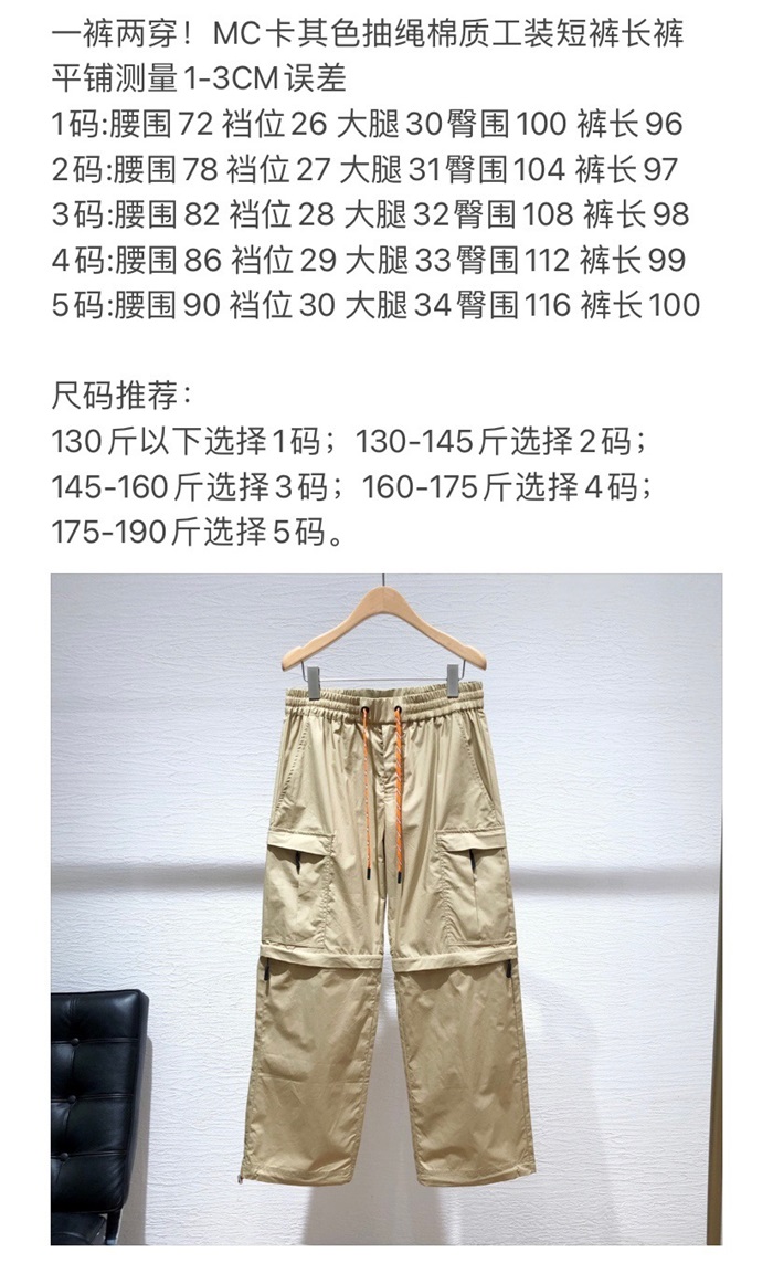 モンクレールメンズカジュアルベージュパンツo150