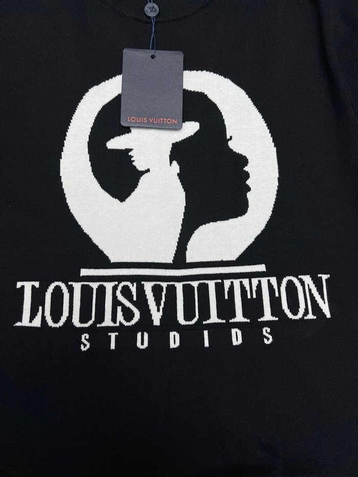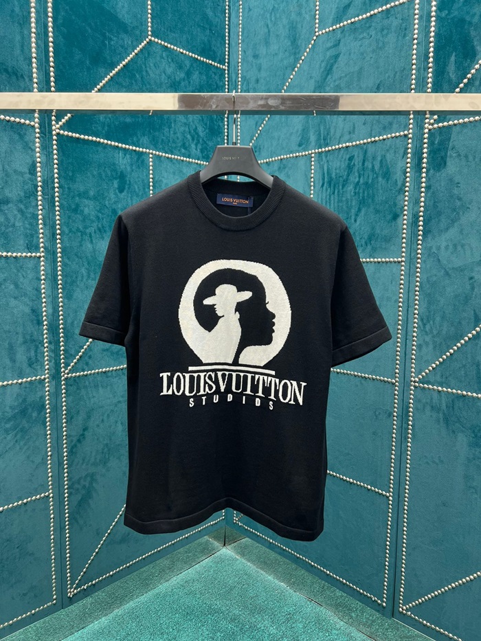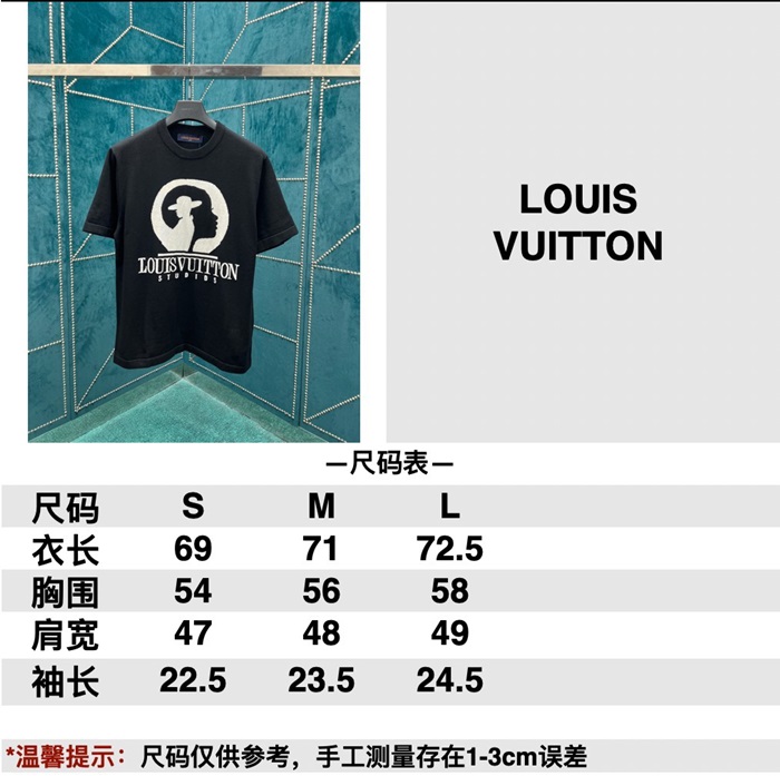 ルイヴィトンメンズクルーネックブラック半袖Tシャツv1680