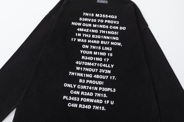 ヴェトモンメンズブラック長袖Tシャツt369