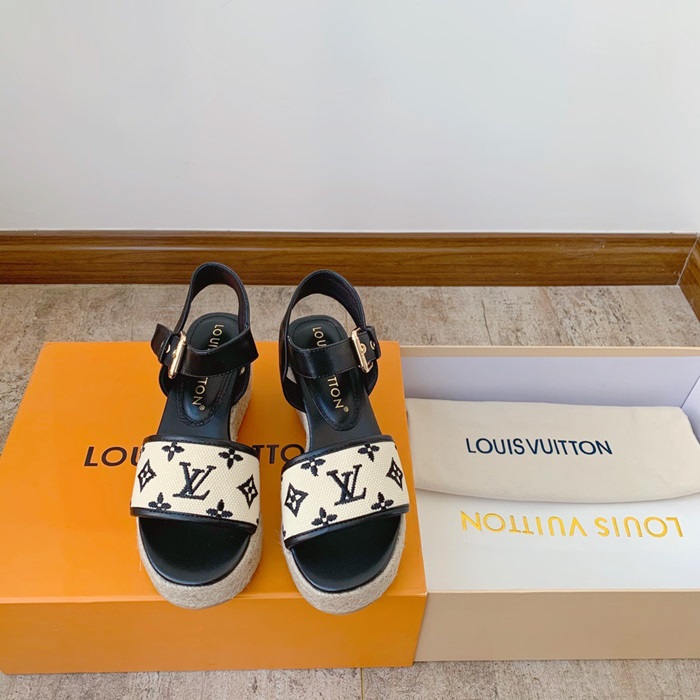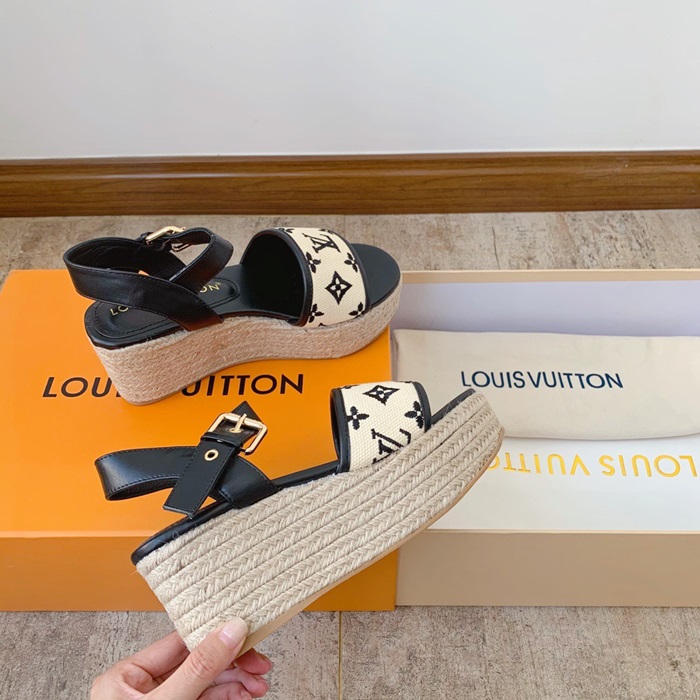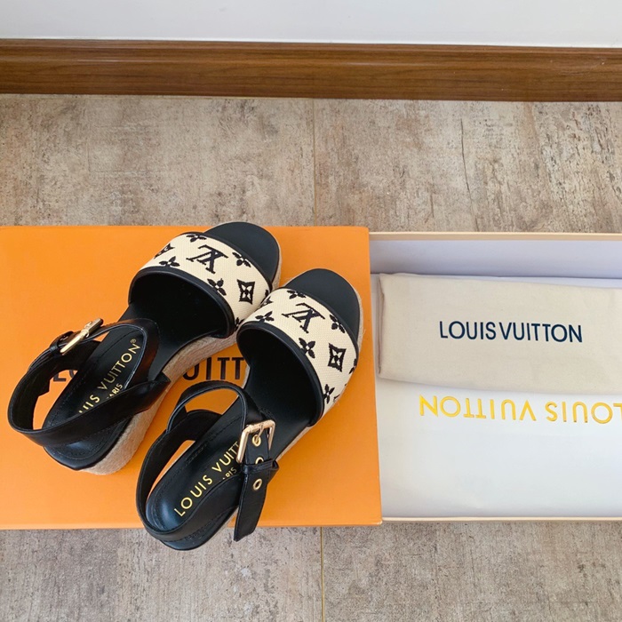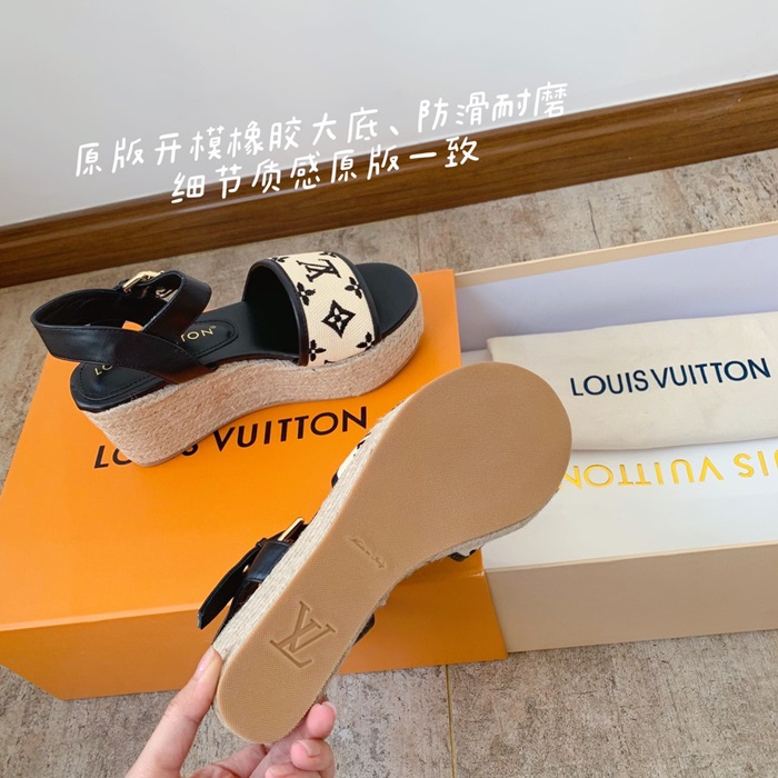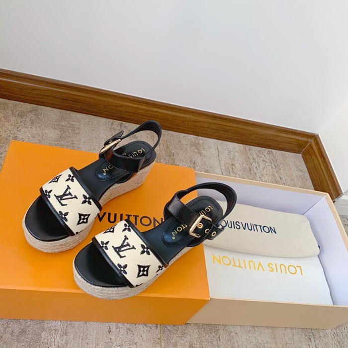 ルイヴィトンレディースブラックサンダルv1687