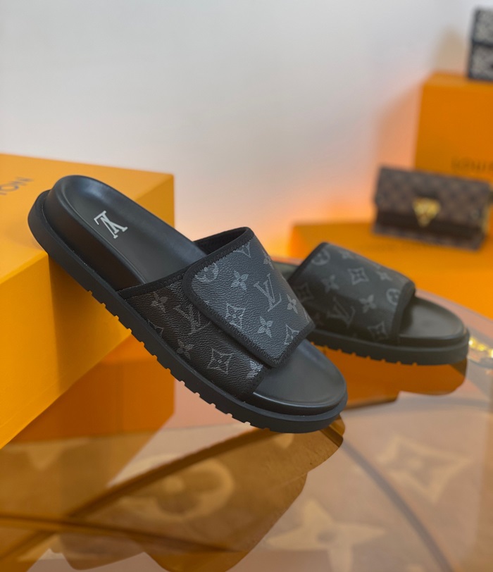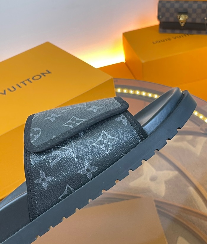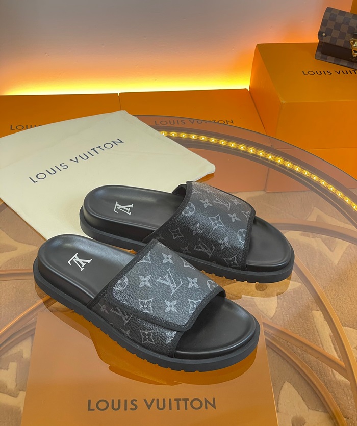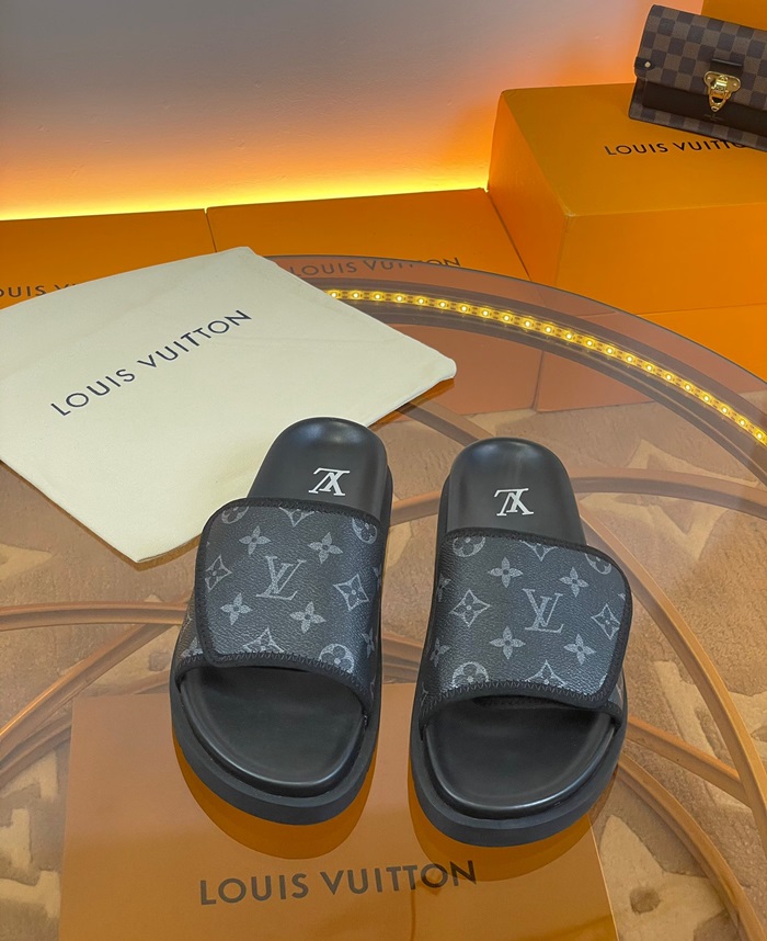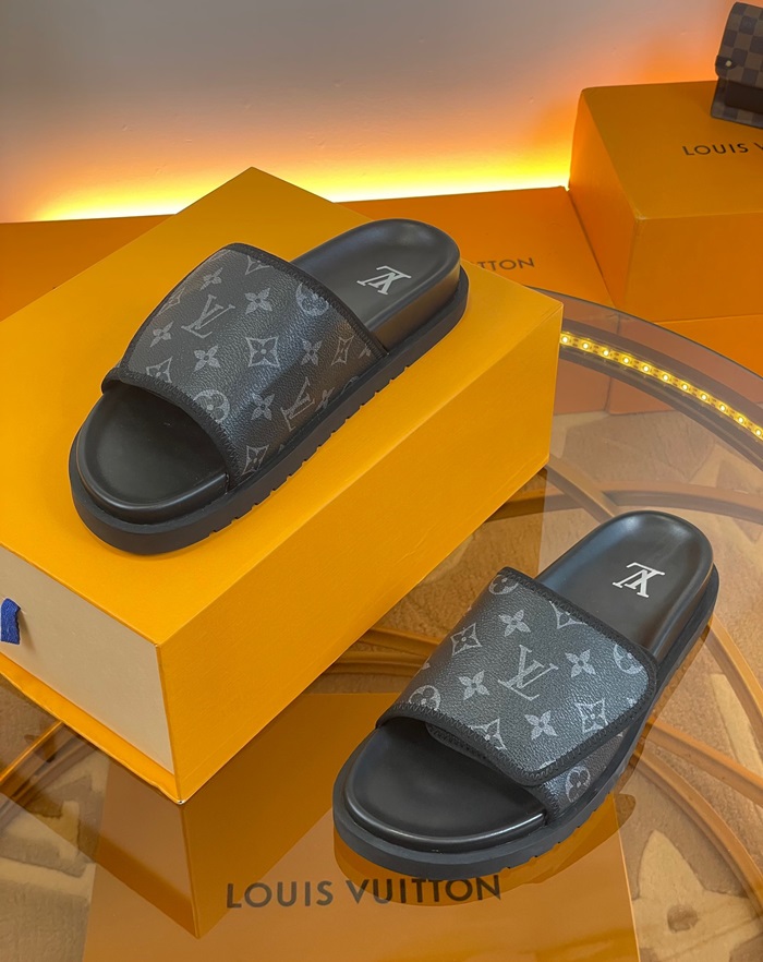 ルイヴィトンメンズブラックスリッパv1688
