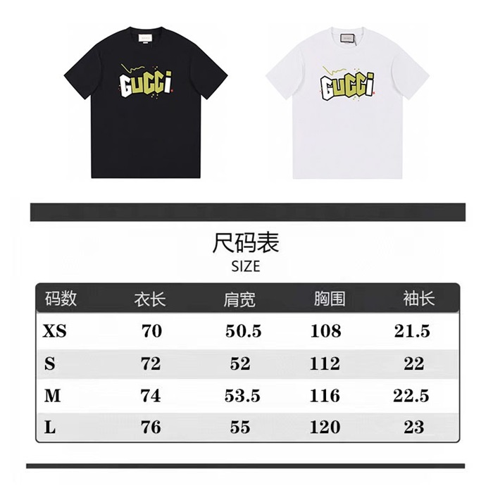 グッチユニセックスブラッククルーネック半袖Tシャツu912